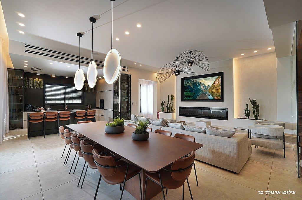 סלון מרווח עם טלוויזיה ענקית בגודל 100 אינץ' המחוברת לערוצי yes.