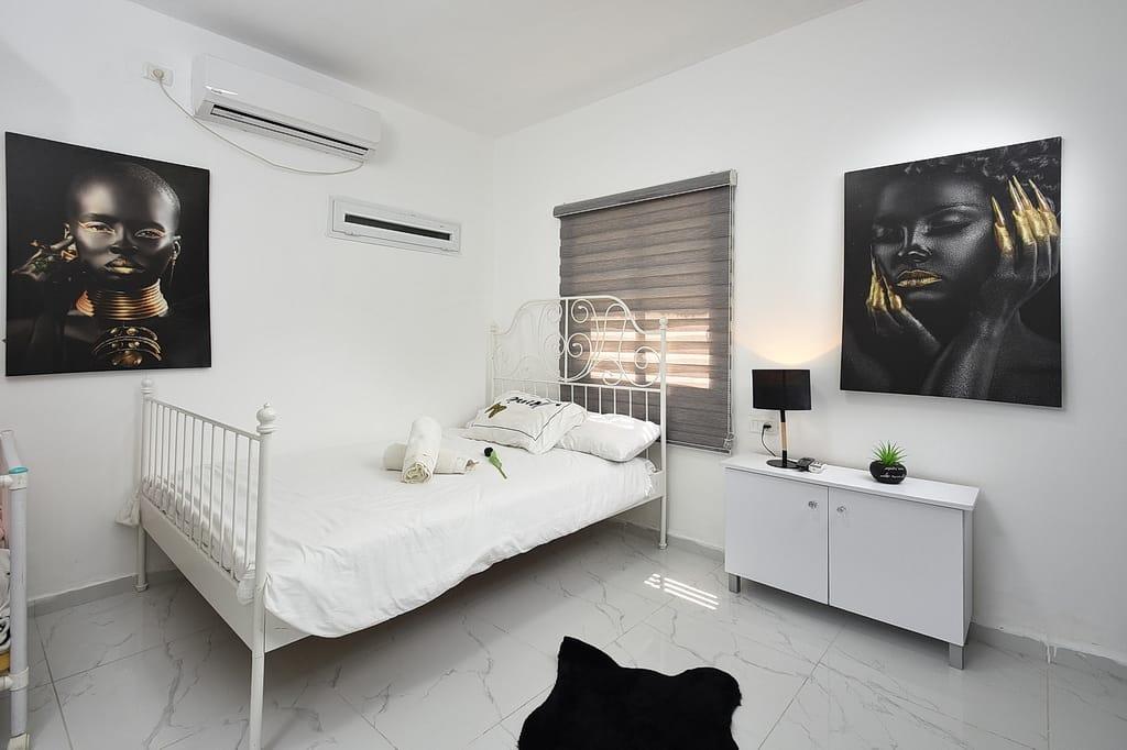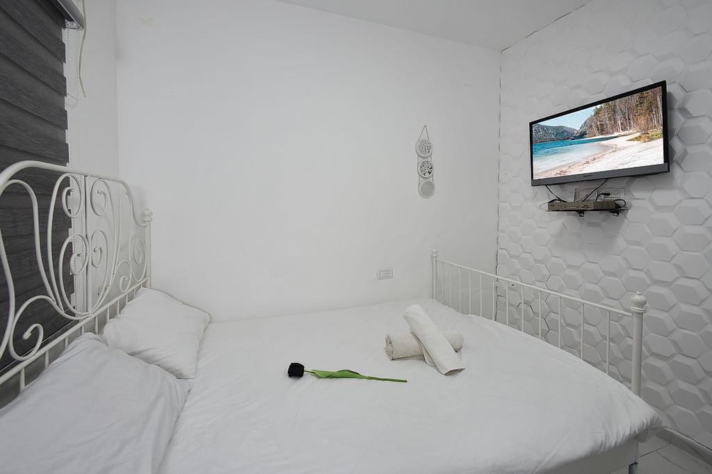- כל חדר שינה כולל: מיטה זוגית, שידות לאחסון, מסך טלוויזיה, מזגן.