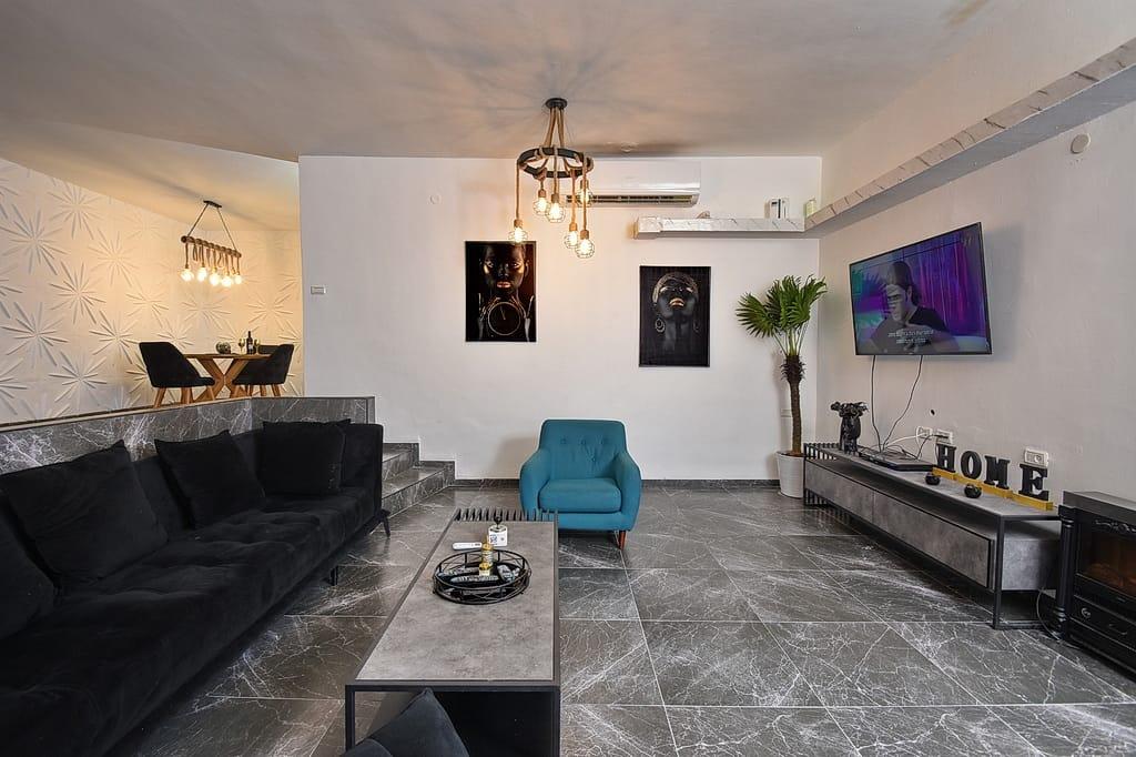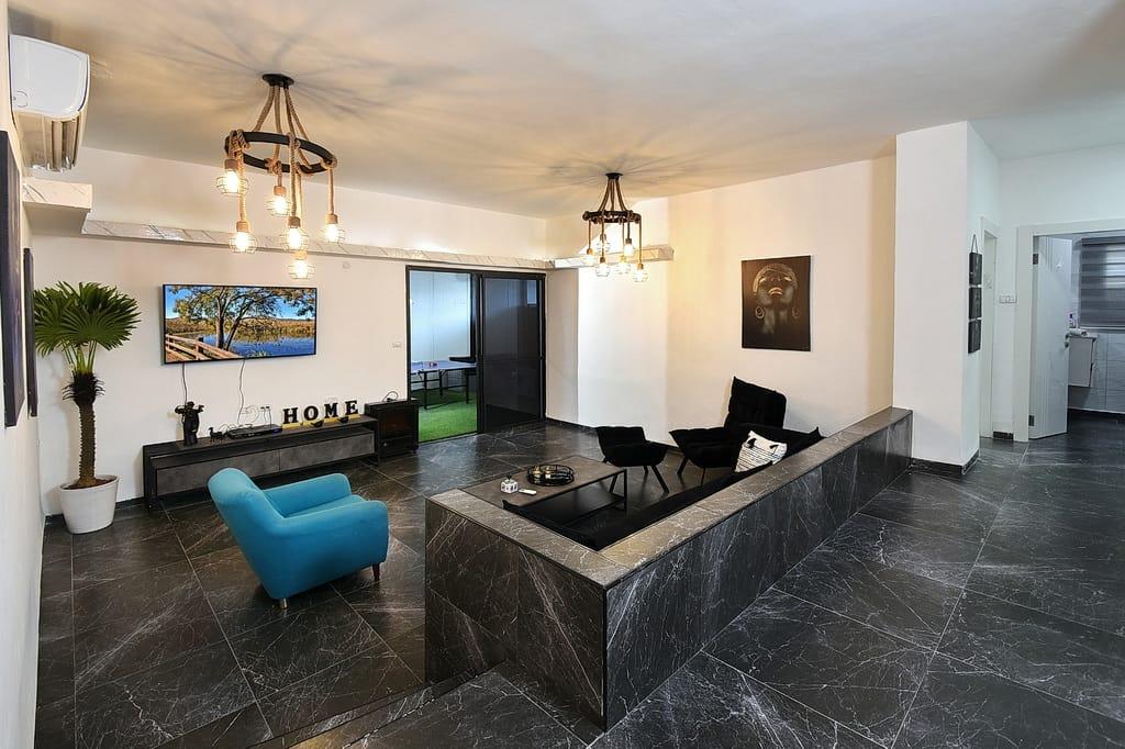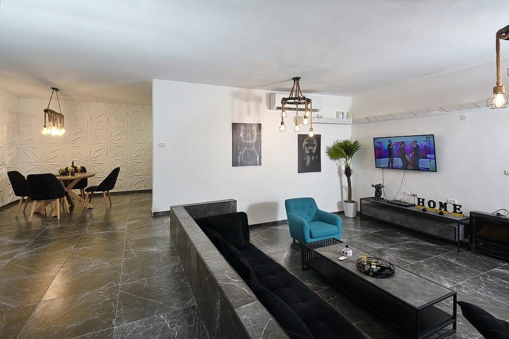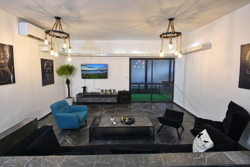 - סלון מרווח עם כורסאות נוחות וטלוויזיה