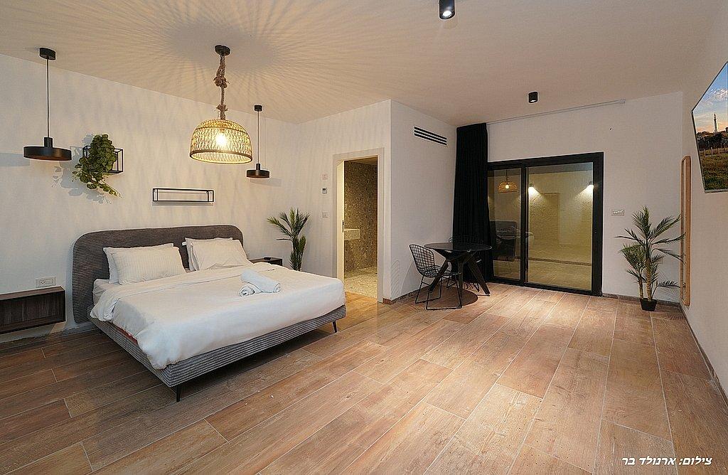 מיטה זוגית, מזגן, טלוויזיה חכמה, שידות וחדר רחצה פרטי עם מקלחת ושירותים
