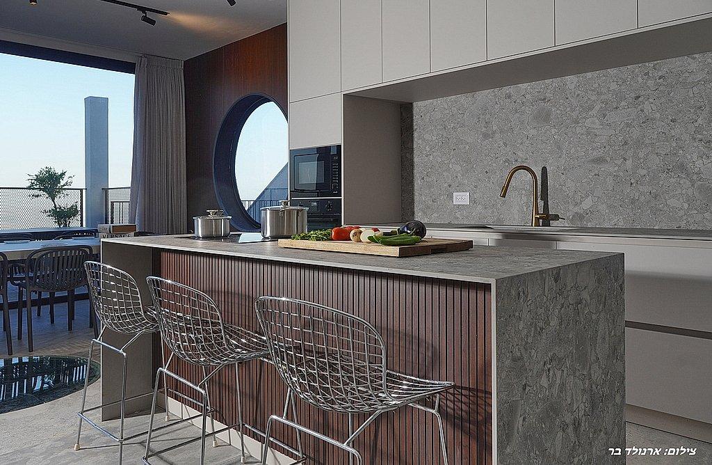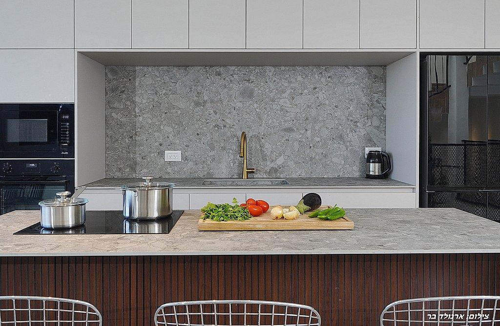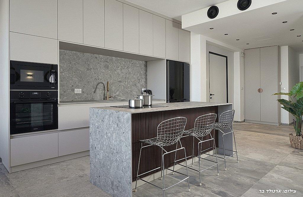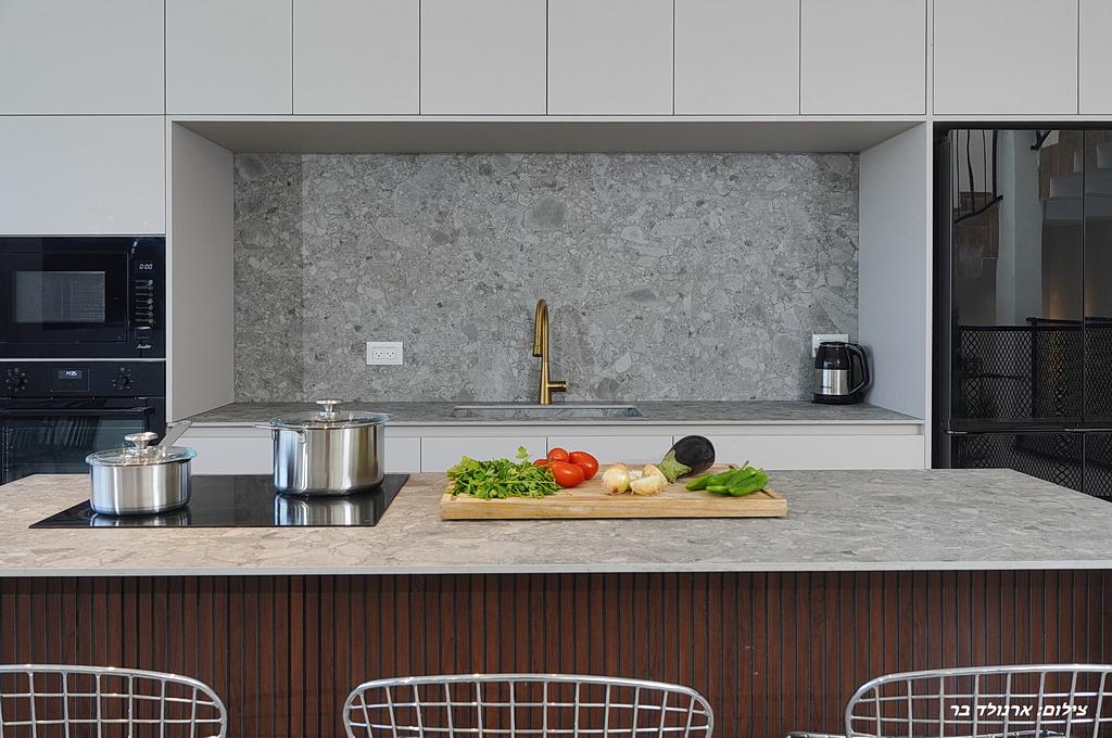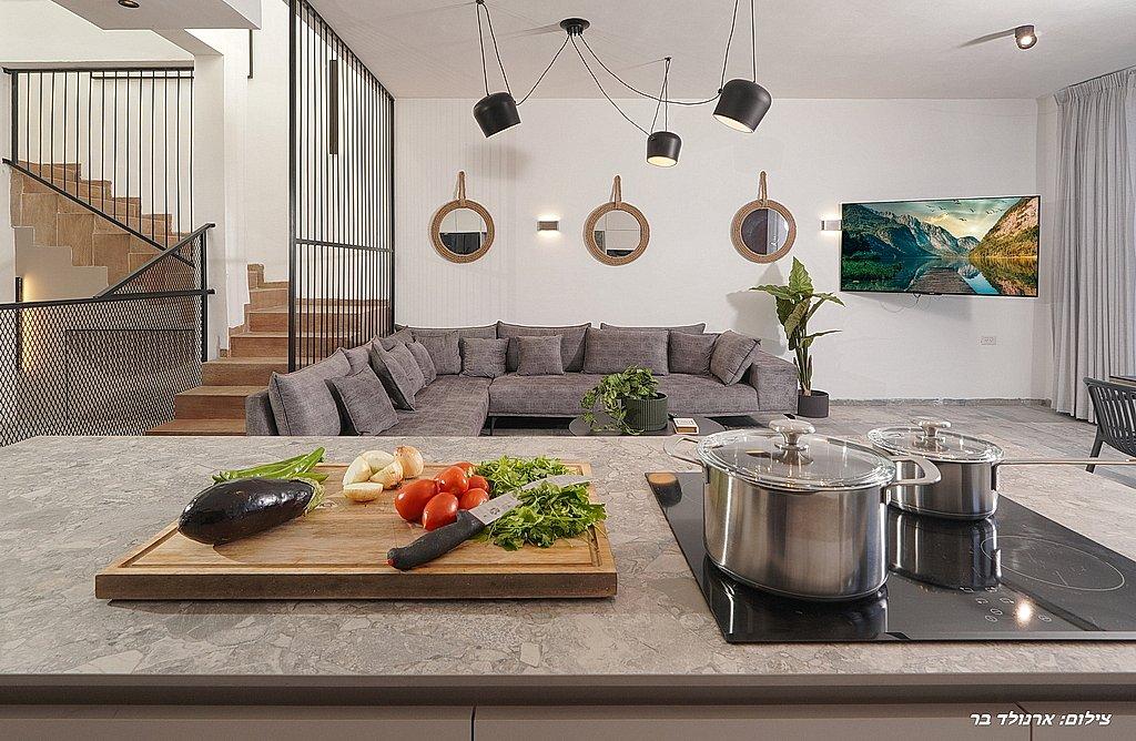 מטבח מאובזר ובו: מקרר, תנור אפייה, מיקרוגל, כיריים אינדוקציה