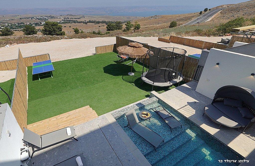 המתחם נופש הבא שלכם! וילה סירקל – Villa Circle מתחם חדשני הממוקם בגליל העליון, נוף כנרת. במתחם קיימות 3 וילות יוקרתיות לאירוח חלומי המעוצבות באופן זהה. לכל וילה מתחם פרטי משלה עם נוף מדהים, כניסה נפרדת, בריכת שחייה, ג'קוזי ספא וסאונה. בנוסף כל וילה מאובזרת בסלון יוקרתי, פינת אוכל, מטבח מאובזר ו-8 חדרי שינה עם חדר רחצה פרטי.