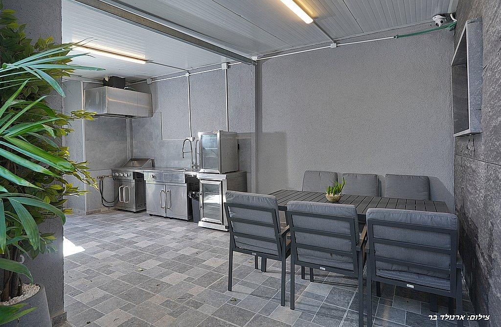 מטבח חוץ הכולל פינת BBQ, כירת בישול גז, מקרר, כיור