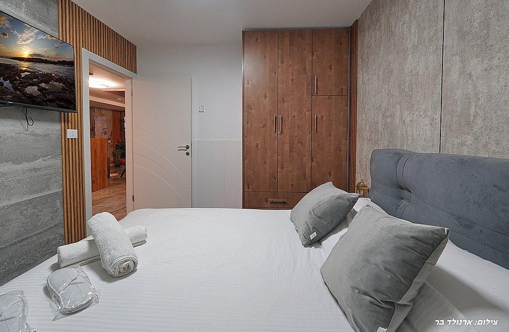 חדר שינה 1: מסך LCD, מיטה זוגית, ארון אחסון