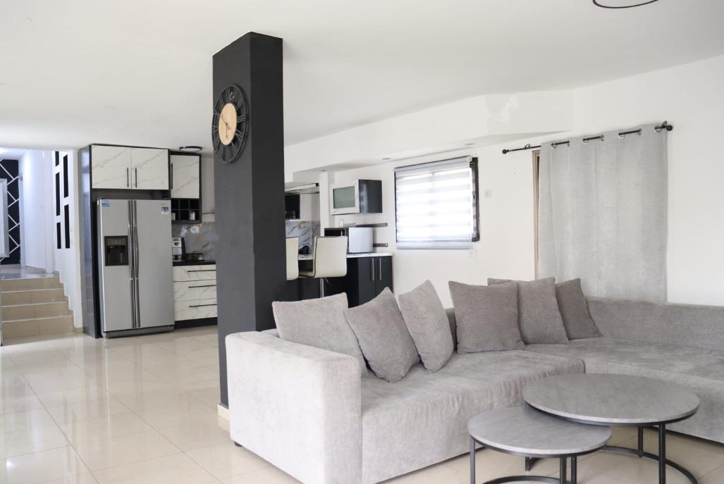 מטבח מאובזר הכולל: מקרר, כיריים גז, מיקרוגל, תנור אפייה, קומקום חשמלי, כלי אוכל והגשה