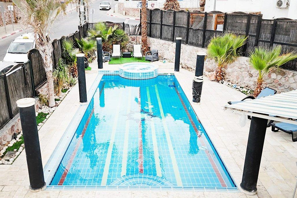 בואו להכיר את וילה עדן הקסומה שבעיר אילת הוילה, וילה אוטנטית כפרית מול הים הבנויה כמפלס אחד מתאימה לנופש משפחות ושוכנת במרחק קצר של נסיעה סביב אטרקציות רבות לכל המשפחה. וילה עדן מונה כ- 6 חדרי שינה מתוכם חדר מאסטר, סלון ומטבח מאובזר, פינת אוכל ויציאה לחצר הכוללת 2 בריכות שחיה אחת קטנה ואחת גדולה עם ג'קוזי ספא, משחקי שולחן לכל המשפחה ושלל פינות ישיבה ושיזוף להנאתכם.