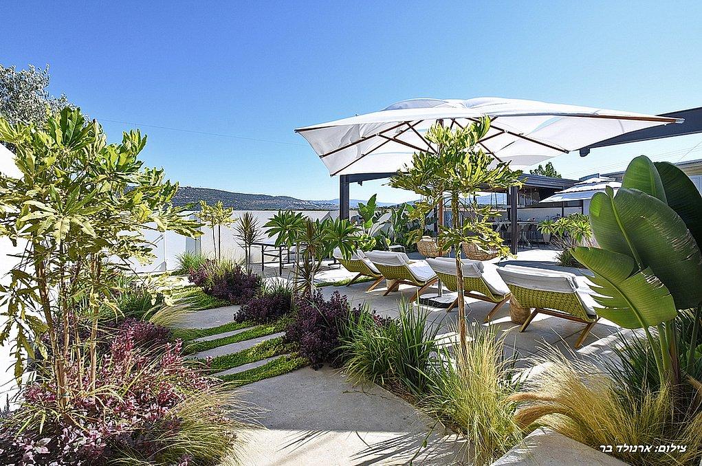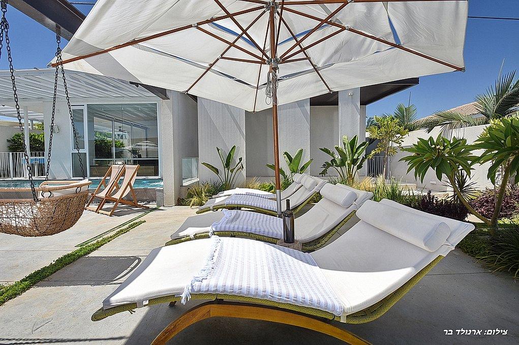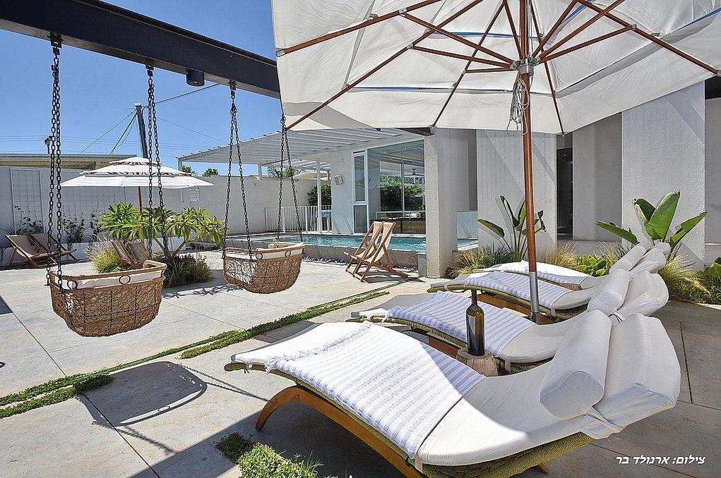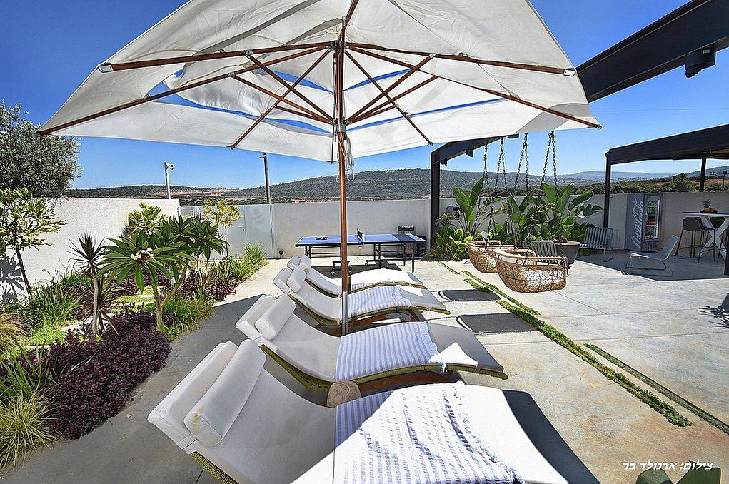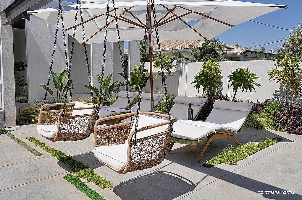מגוון פינות ישיבה פזורות - מיטות שיזוף, כסאות ושולחנות, ערסלים