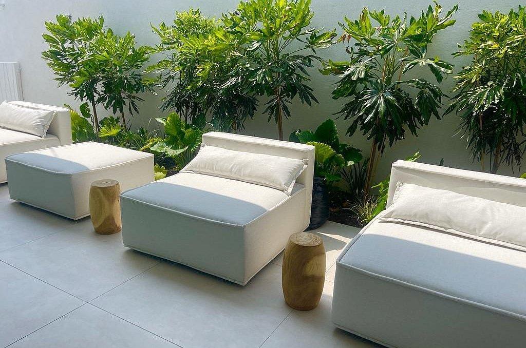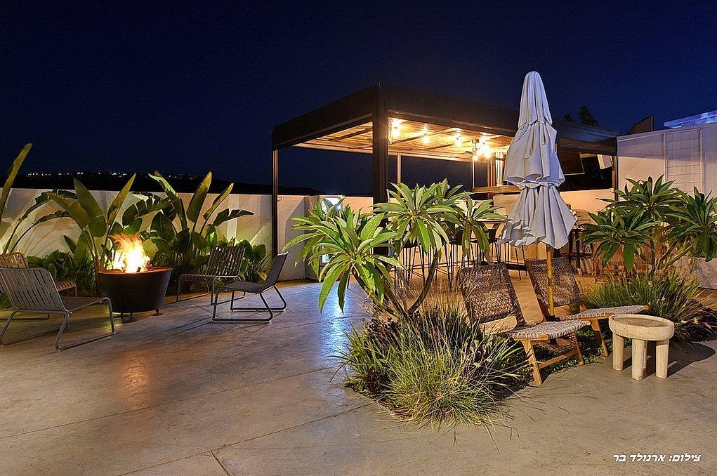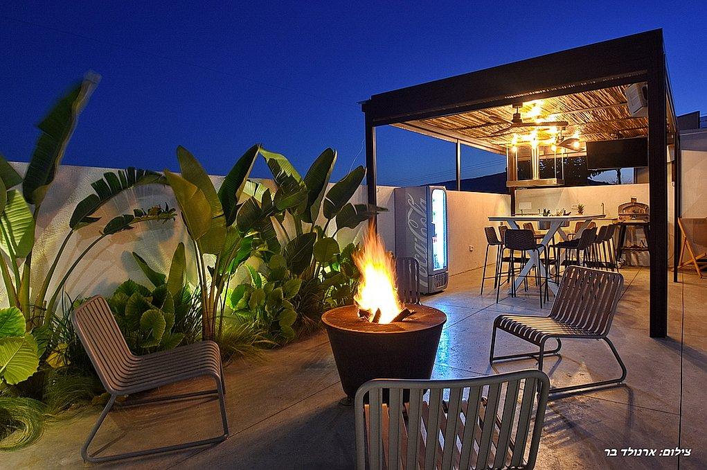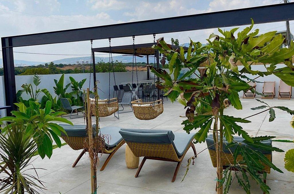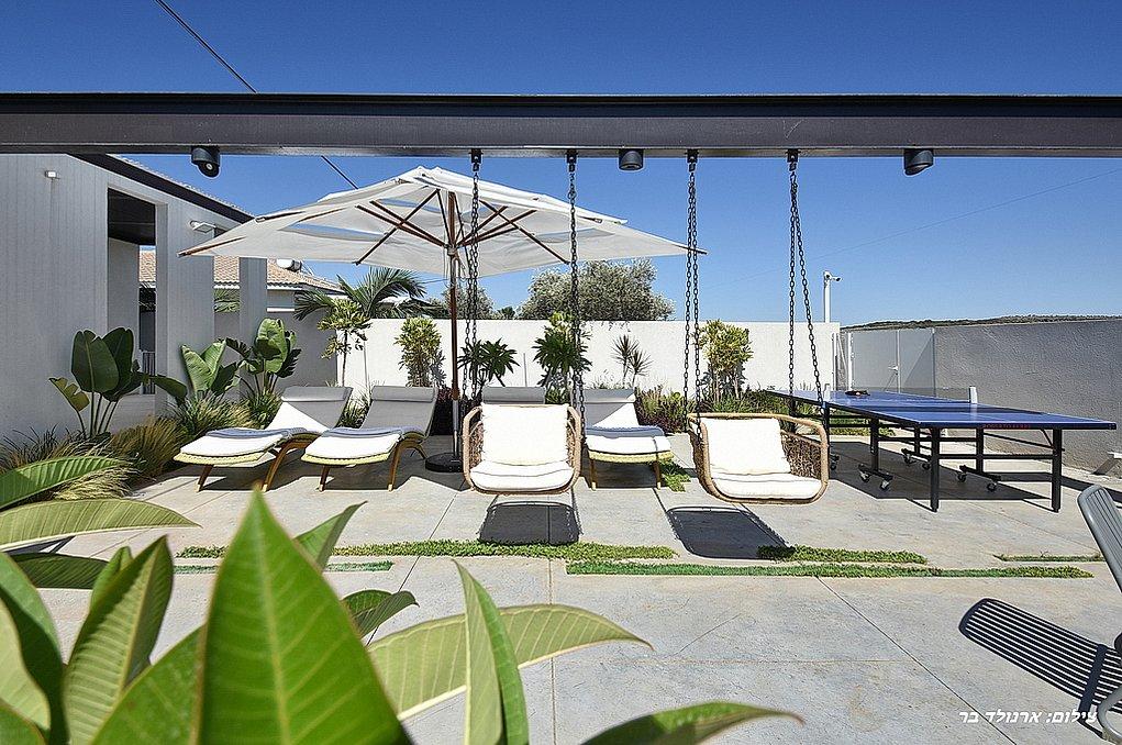 מגוון פינות ישיבה פזורות - מיטות שיזוף, כסאות ושולחנות, ערסלים