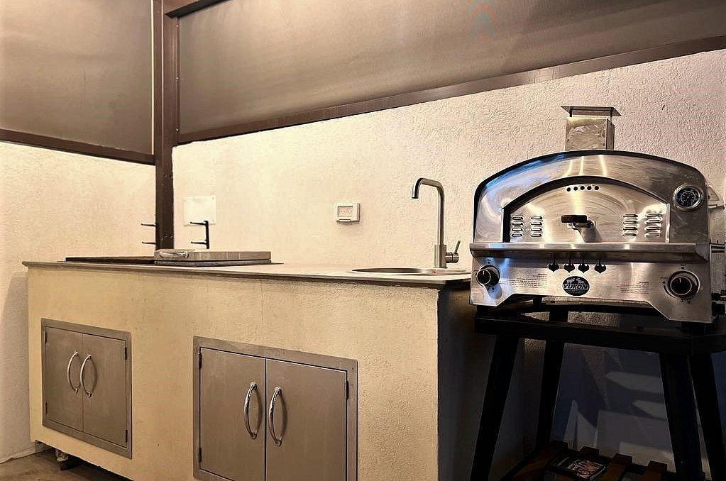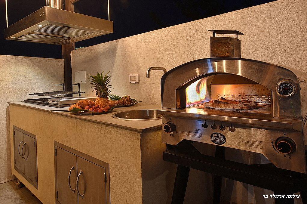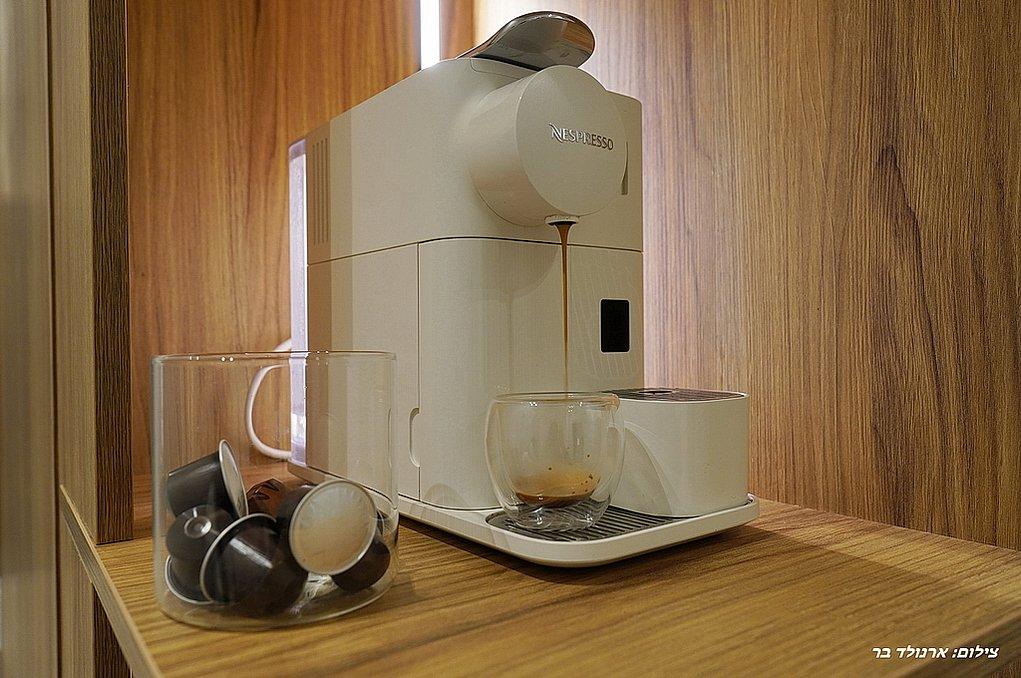 מטבח מאובזר הכולל - מקרר, כיריים, תנור אפייה, מכונת קפה, כלי אוכל והגשה