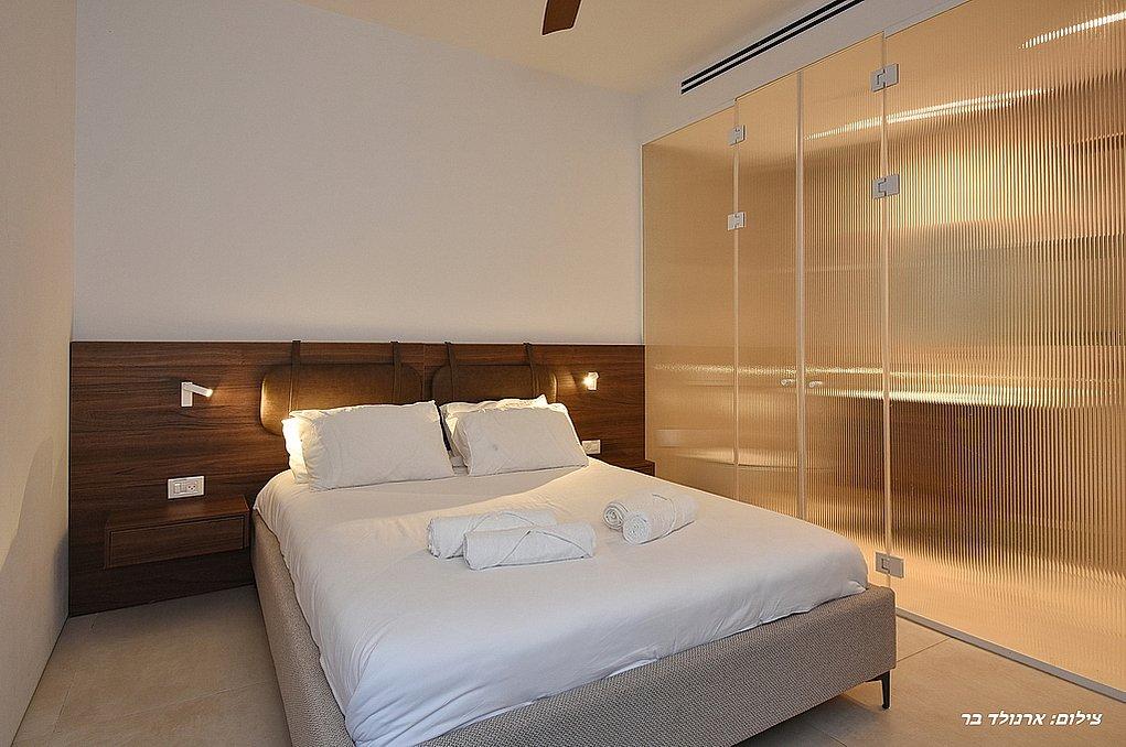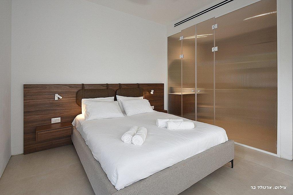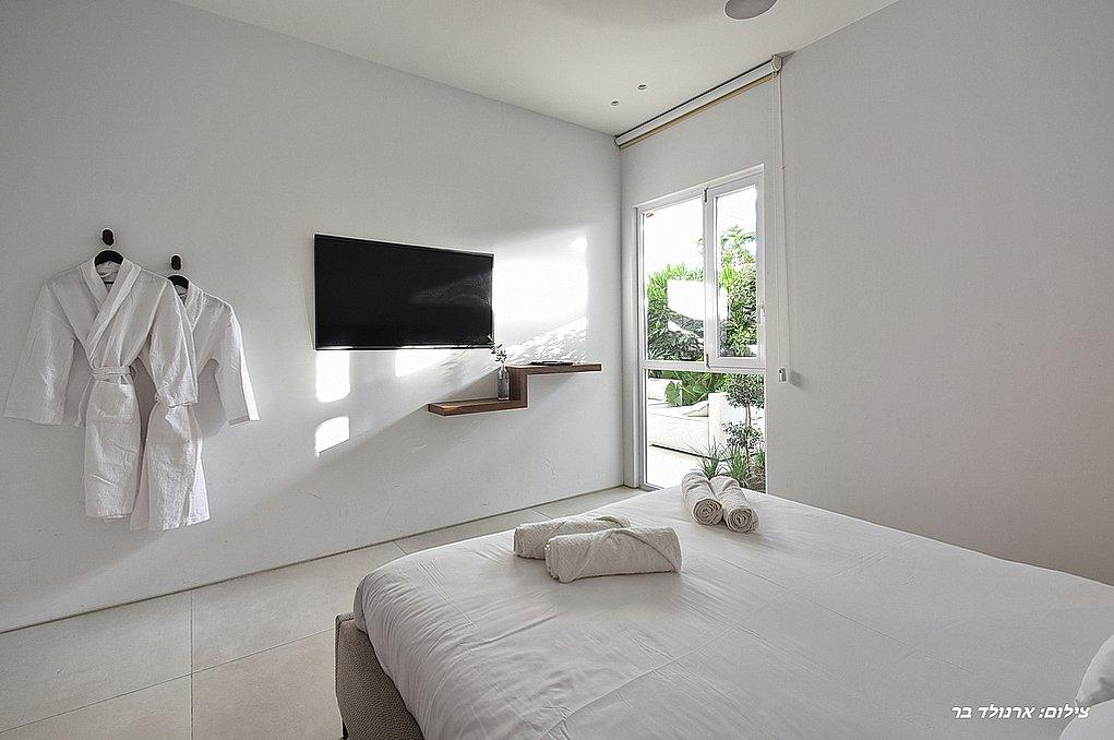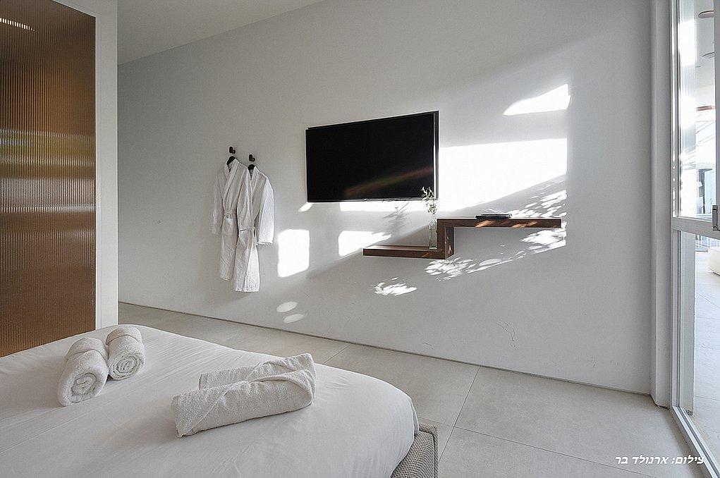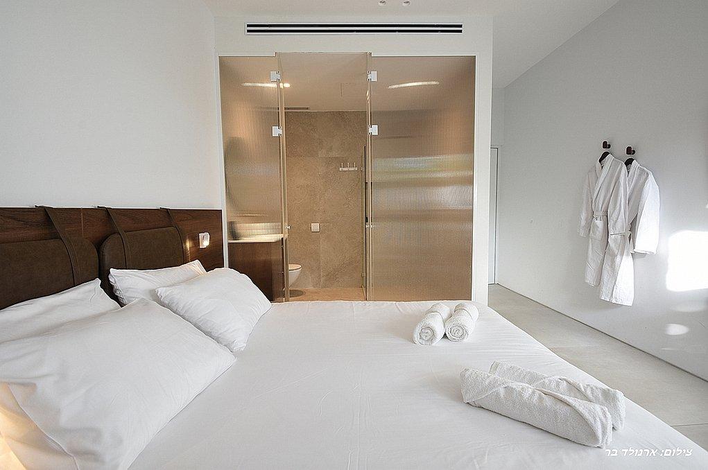 מיטה זוגית רחבה, טלוויזיה, שידות אחסון, מיזוג אוויר, רמקולים נשלטים ע"י טאבלט וחדר רחצה מעוצב (מגבות, סבונים, מברשות שיניים, מייבש שיער, חלוקים וסבונים