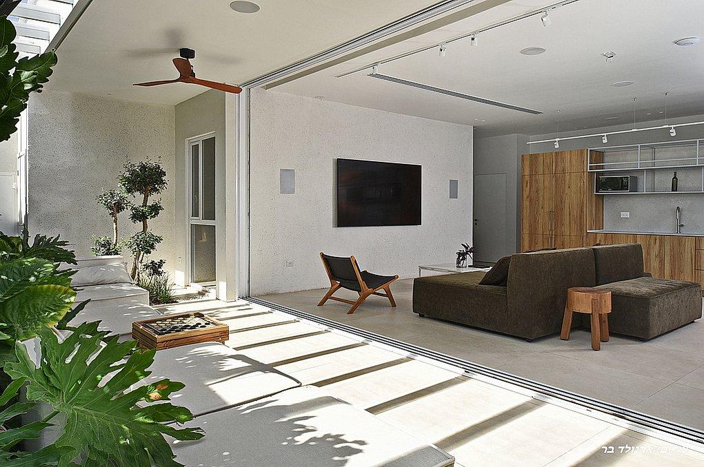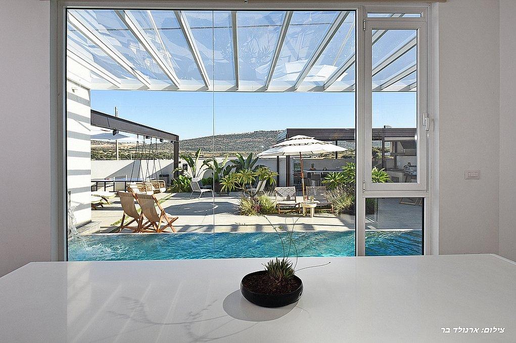 מתוך הסלון תוכלו לצאת ישירות אל החצר הכוללת: