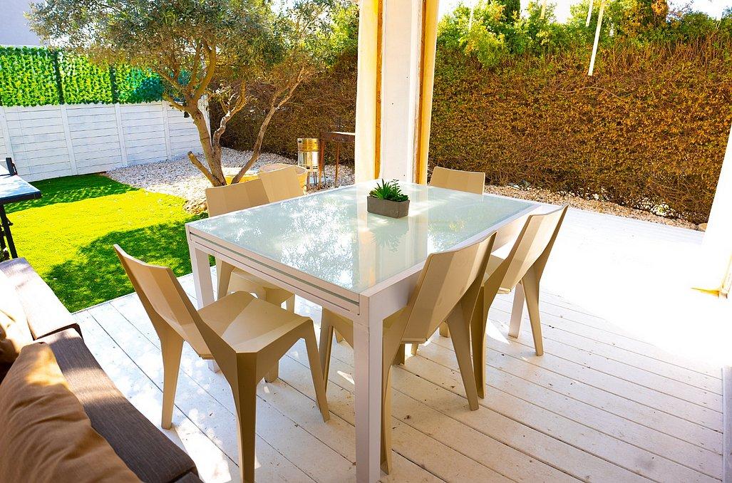 הפינת אוכל (נפתחת ל2.7 מטר) מצוידת בכיסאות נוחים ומערכת ישיבה, מה שמספק את המקום המושלם לספוג את השמש וליהנות מסעודה באוויר הפתוח.