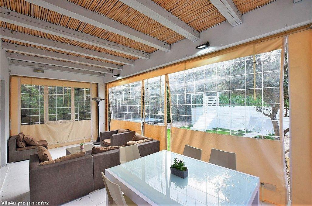 בחוץ, הווילה מתהדרת בבריכה פרטית מחוממת ופינת אוכל וישיבה מרווחת עם תקרת חימום.