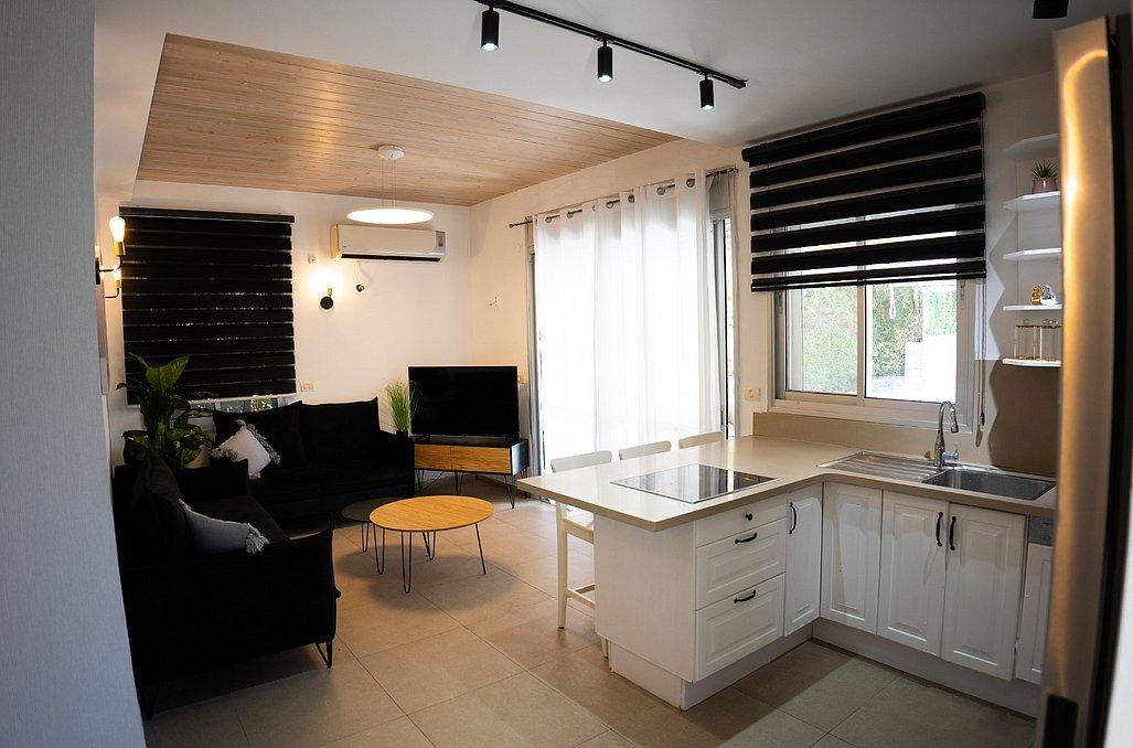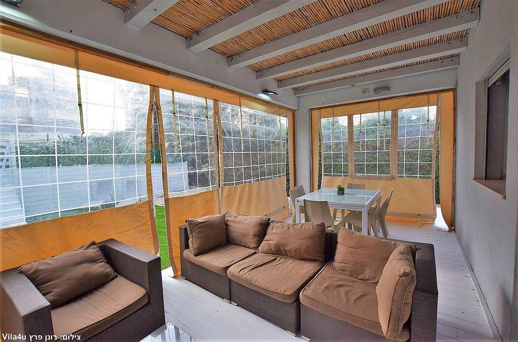 עם כניסתכם לוילה, תקבלו את פניכם בסלון מלא האור עם חלונות המציעים נוף אל החצר. הסלון מרוהט באלגנטיות עם ספות נוחות, טלוויזיה גדולה בעלת מסך שטוח עם חיבור לערוצי YES, היוצרים אווירה נעימה ומזמינה.