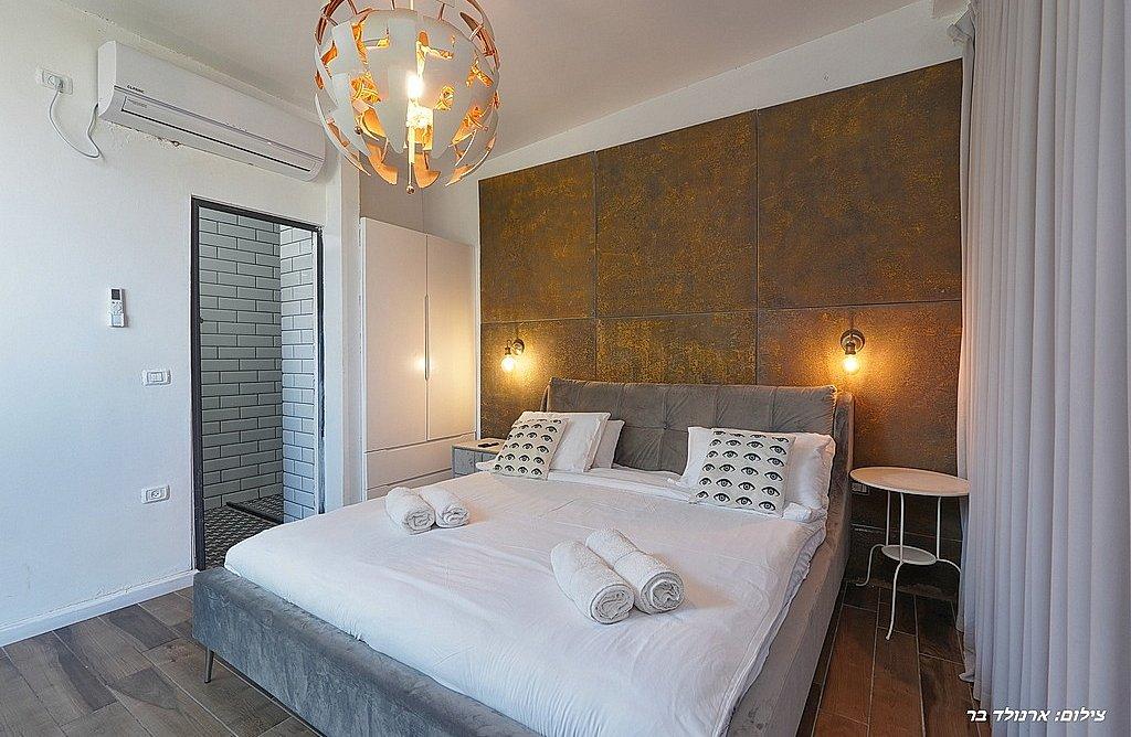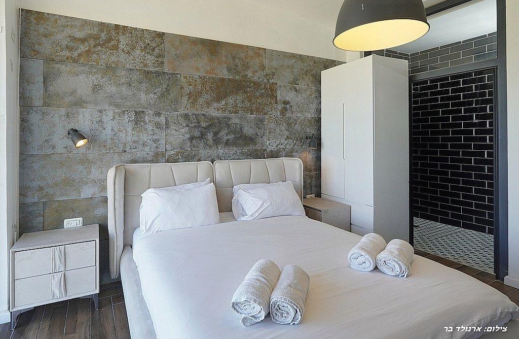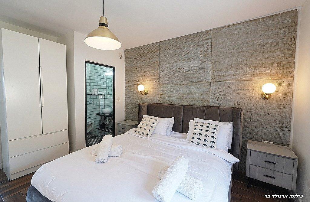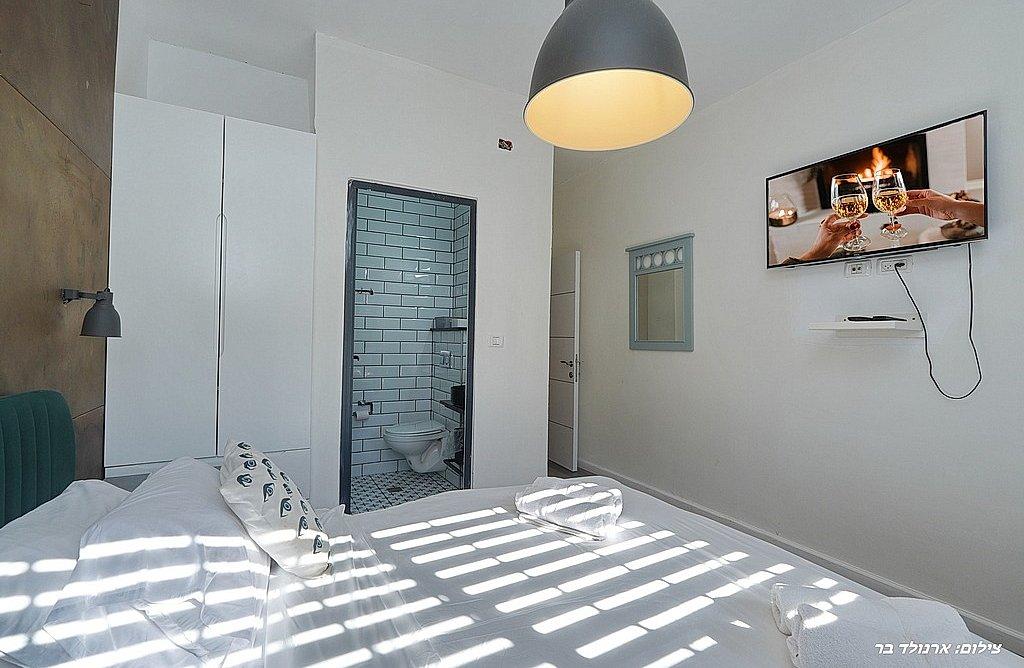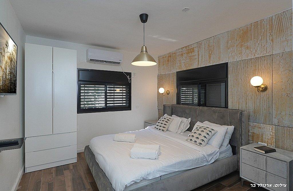 מיטה זוגית, טלוויזיה, חדר רחצה פרטי, שידות וארונות לאחסון, מזגן.