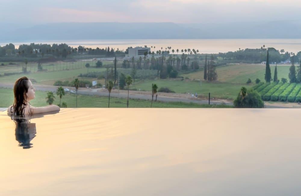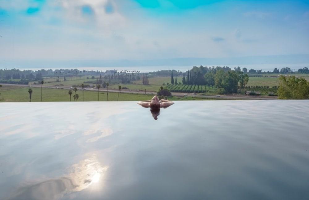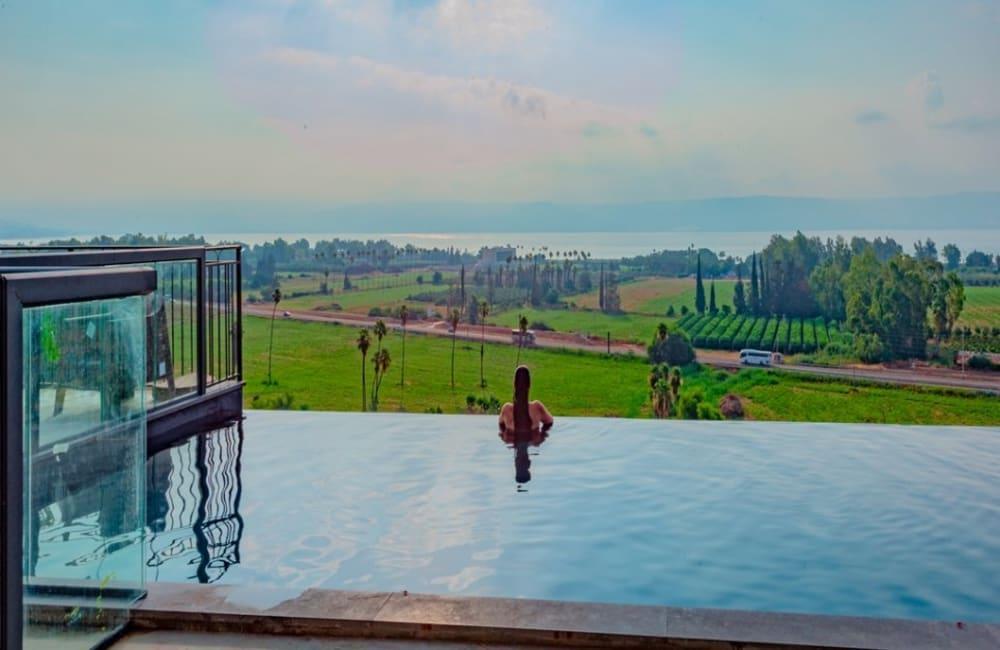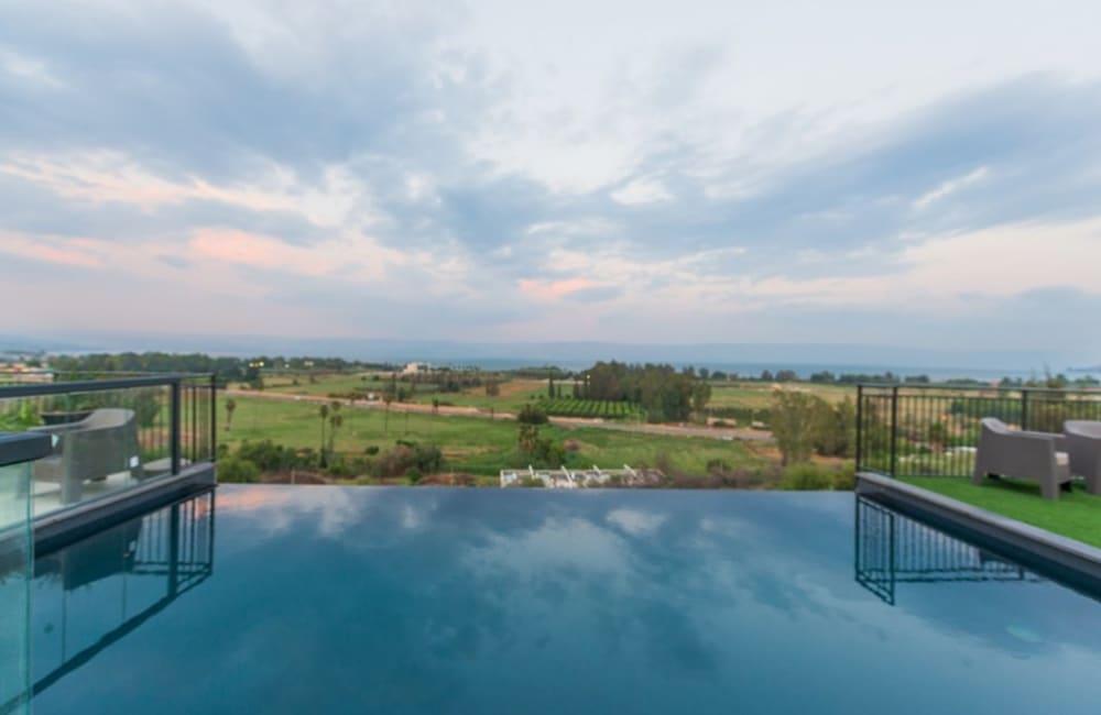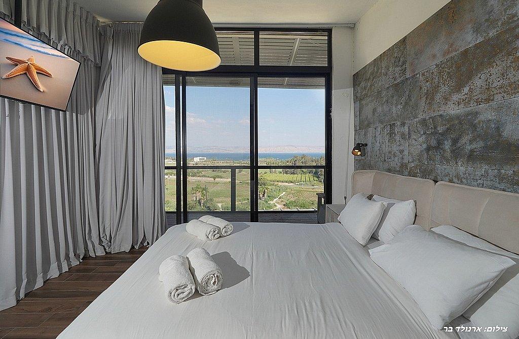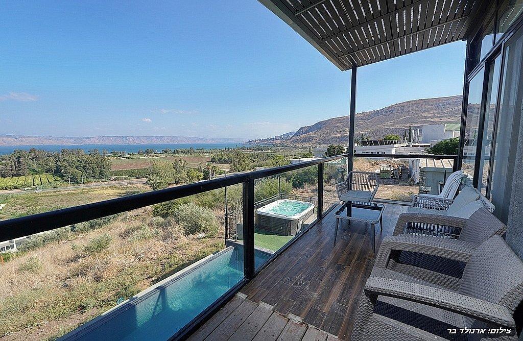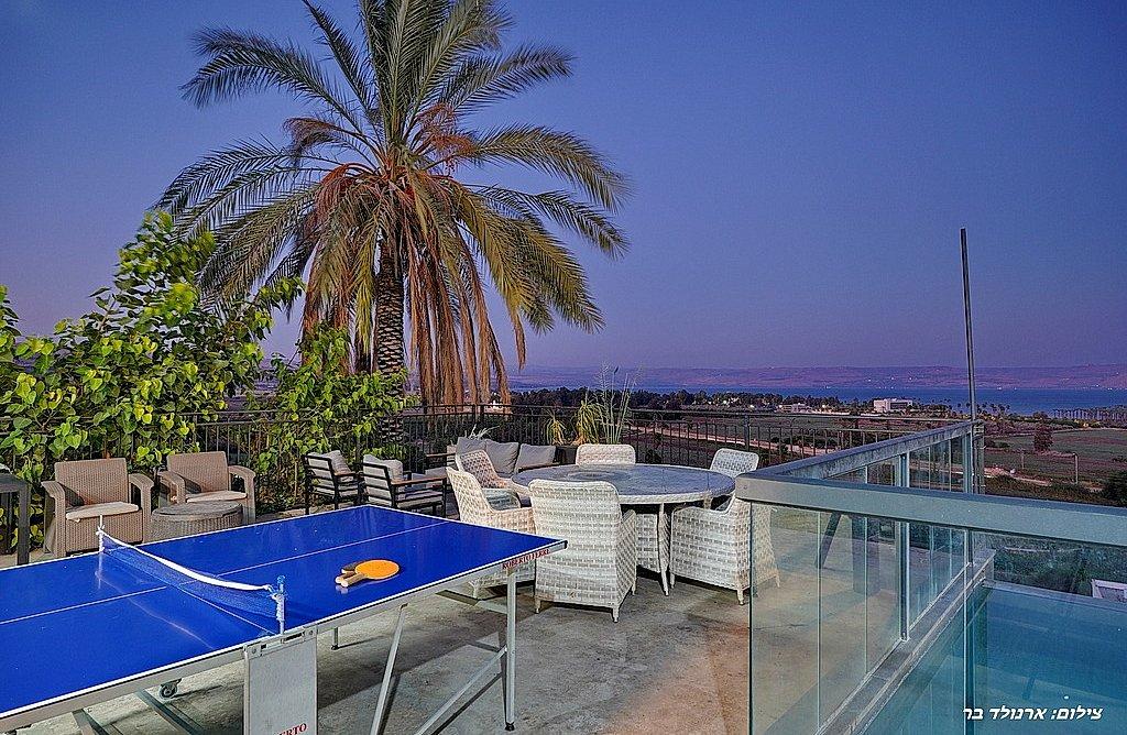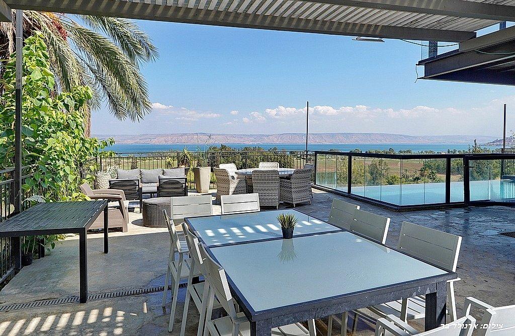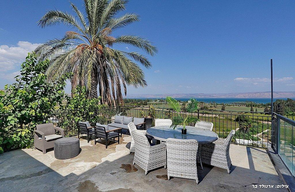 מתחם חיצוני משגע עם נוף פנורמי לימת הכנרת.