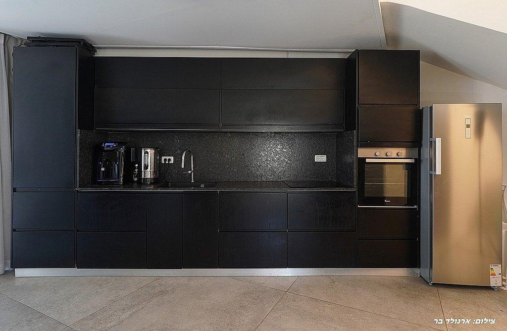 מקרר, תנור אפייה, כיריים חשמליות, מיקרוגל, קומקום, כלי הגשה ובישול.