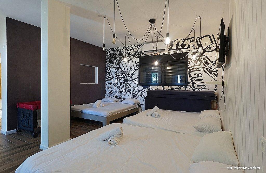 חדר ילדים ייעודי לילדים עם 3 מיטות זוגיות, מזגן, טלוויזיה, ניתן להוסיף עוד מזרנים.