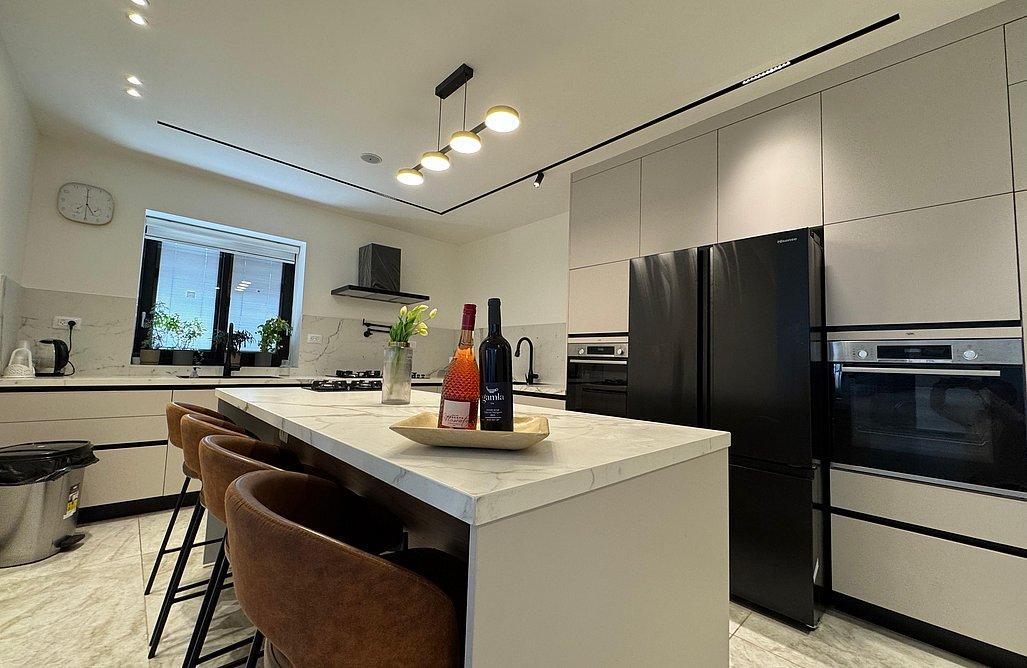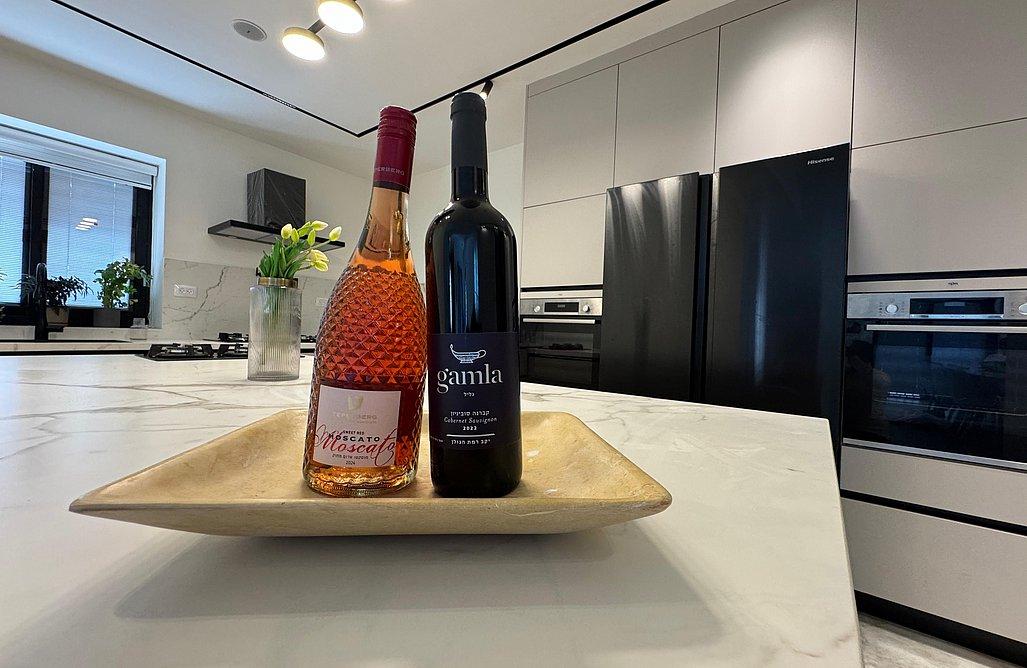 מטבח כשר ומצויד במלואו: מקרר, מקפיא, 2 תנורים, כיריים גז, פינת קפה, מיקרוגל, כלים, 2 כיורים נפרדים ועוד