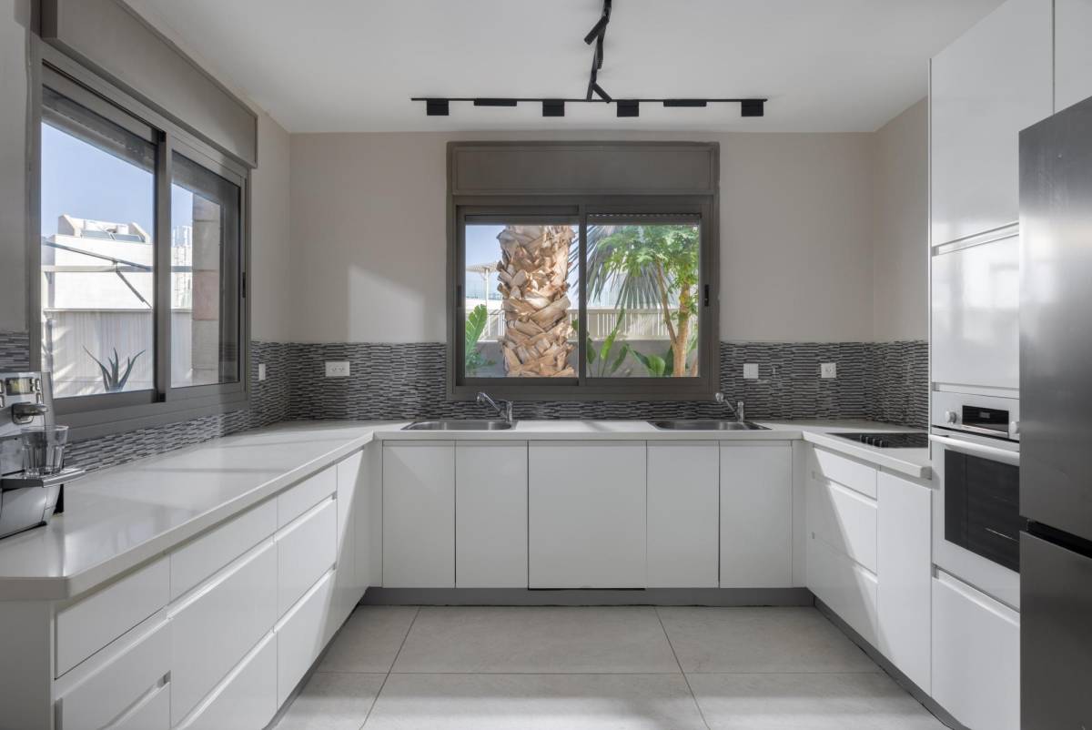 מטבח מאובזר הכולל - מקרר, כיור כפול, כיריים, מיקרוגל, קומקום חשמלי ותנור