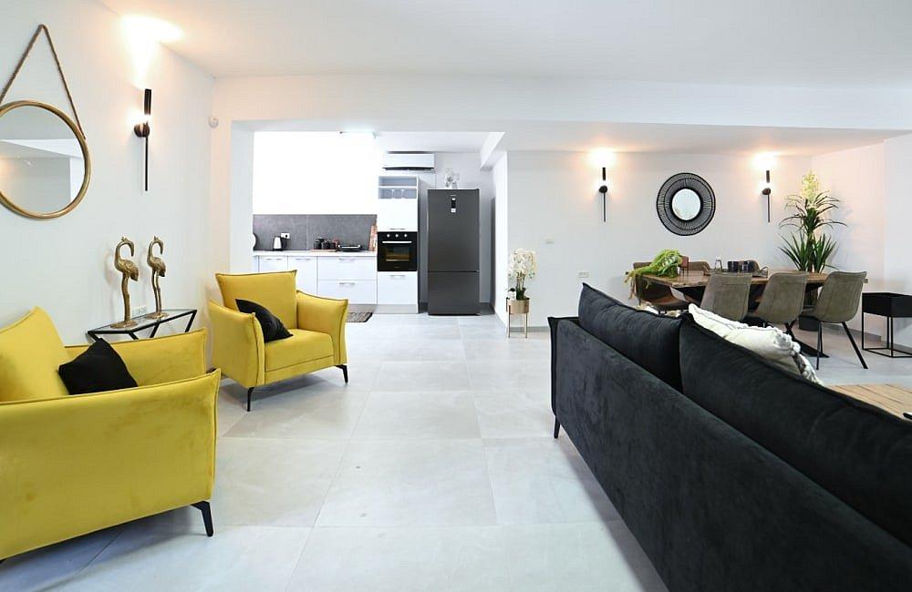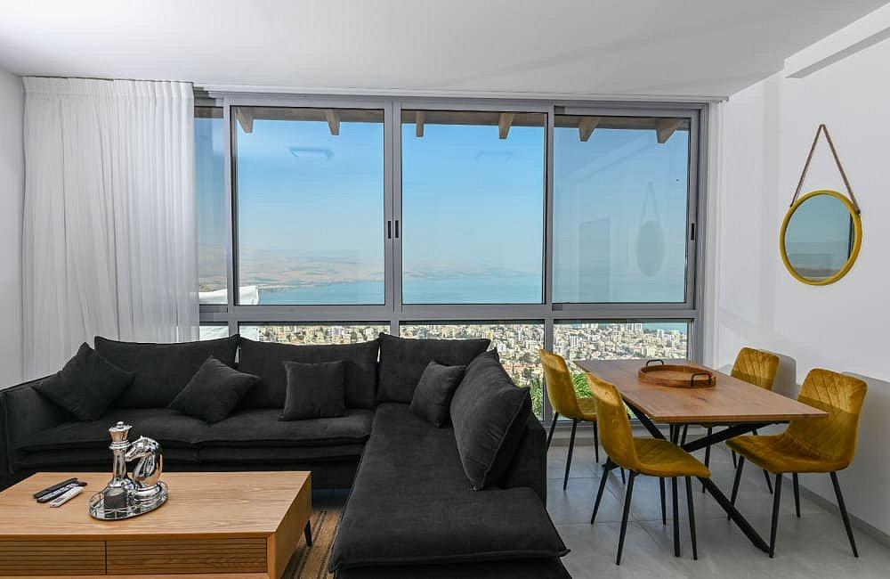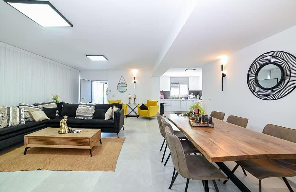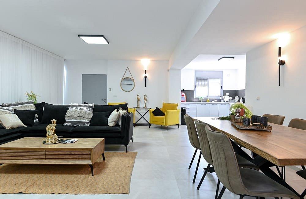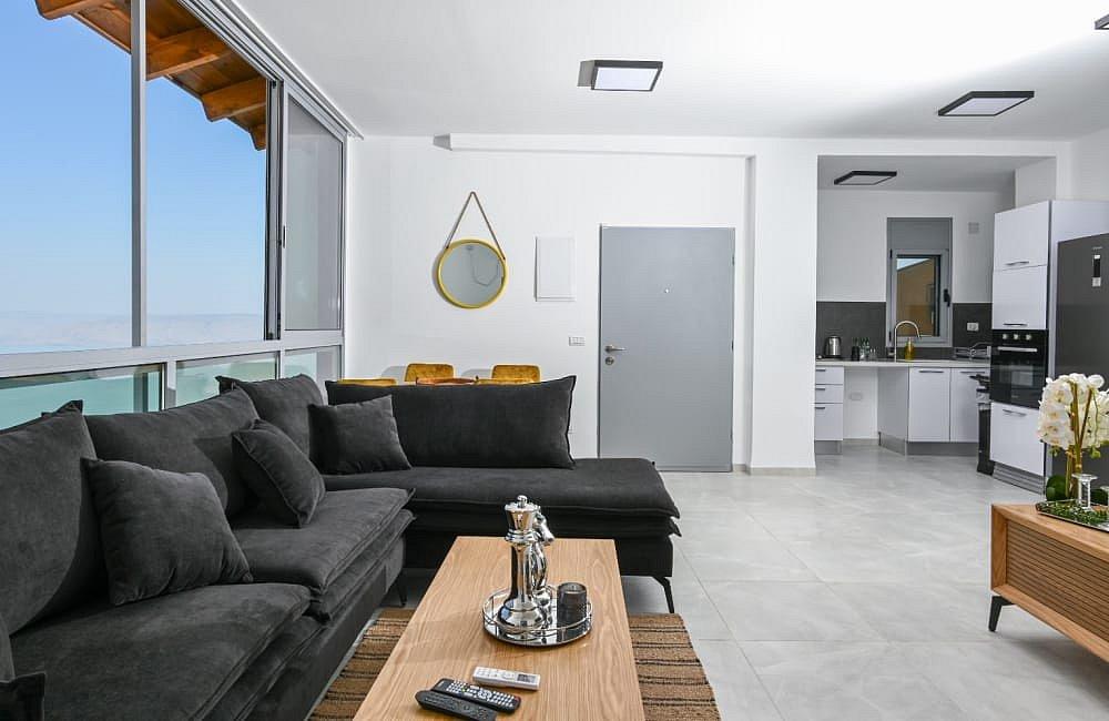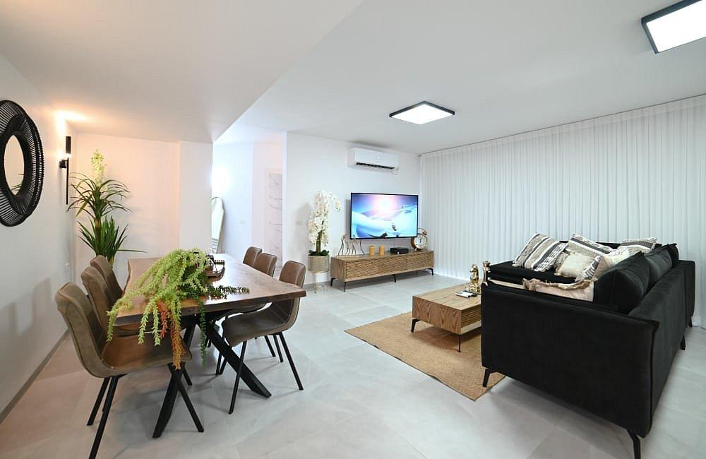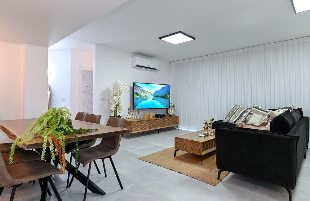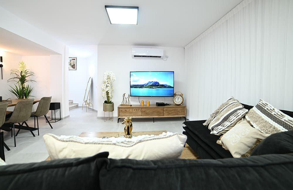 סלון מעוצב עם טלוויזיית 50 אינץ', חיבור לממירי HOT ול-NETFLIX