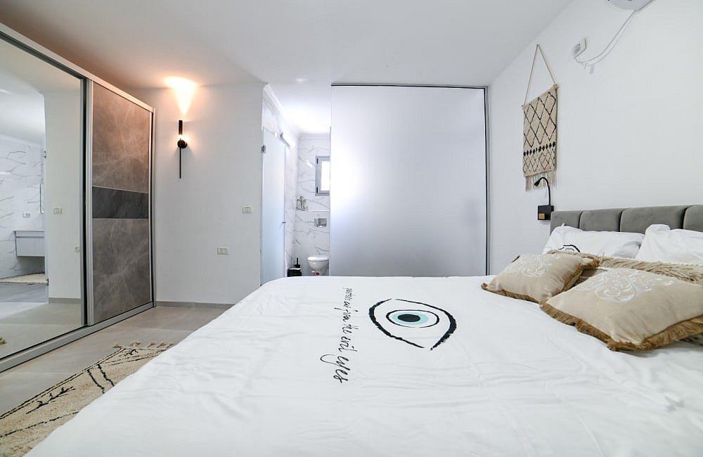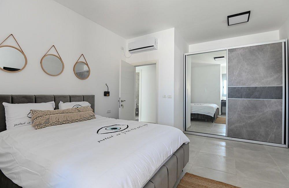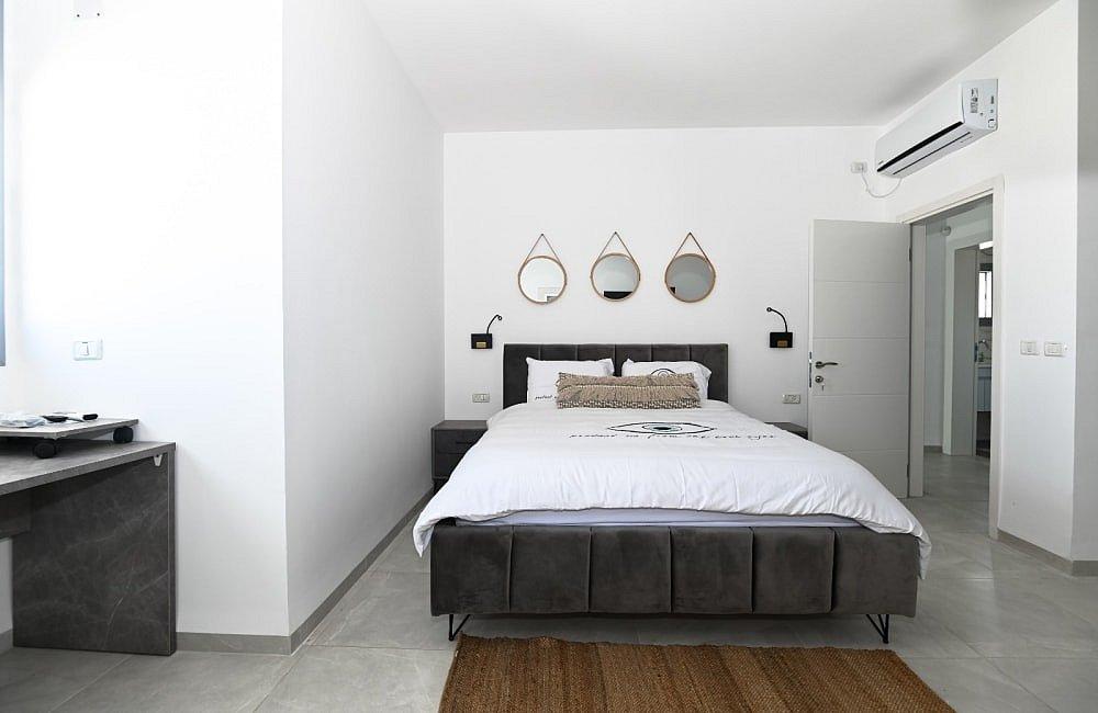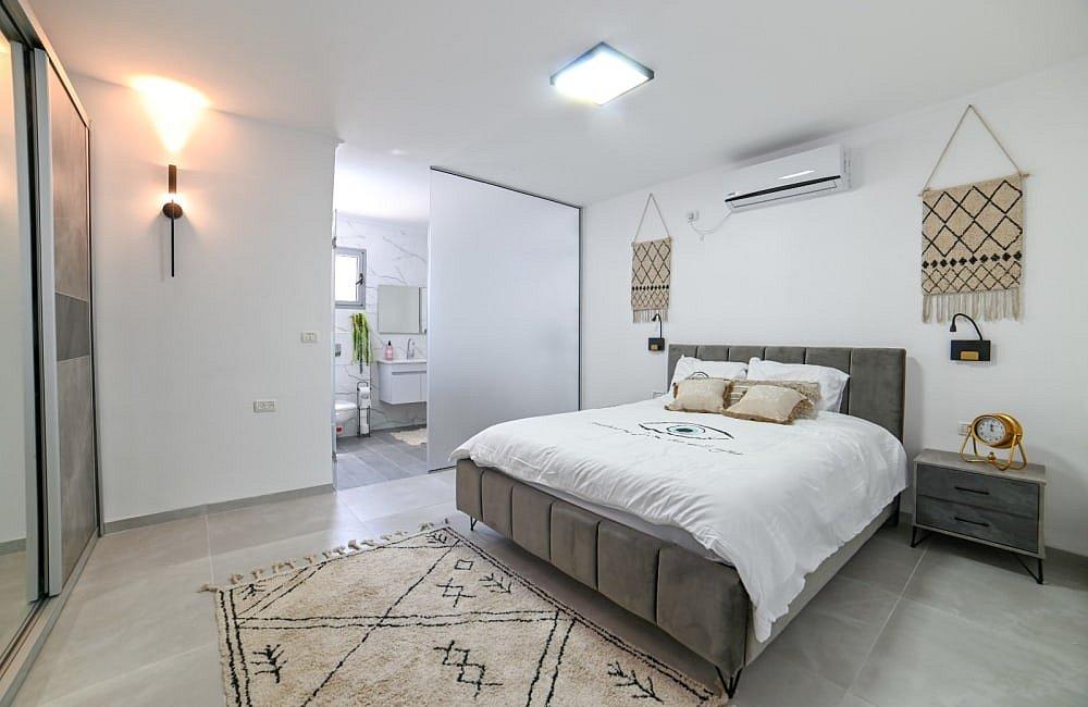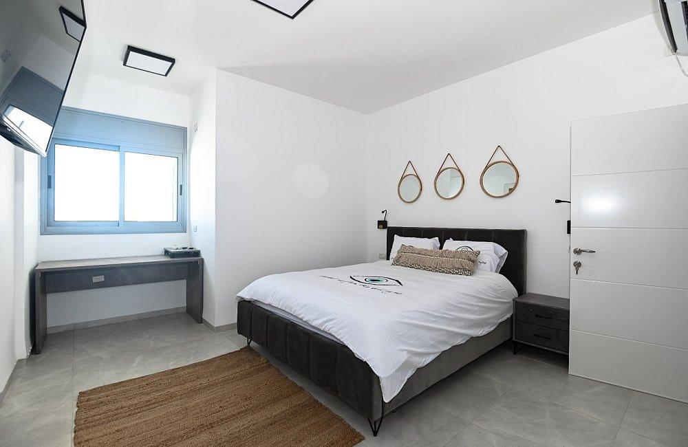 מיטה זוגית, מיזוג אוויר, מסך צפייה, שידות