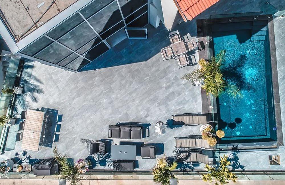 בריכת שחייה מחוממת, מגודרת ומקורה, מידות: 8×3 מטר, עומק מקסימלי: 1.7 מטר