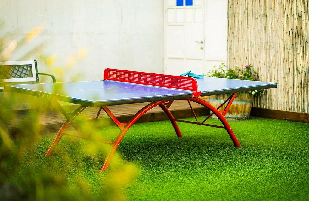 חצר רחבת ידיים עם ערסלים ופינות ישיבה