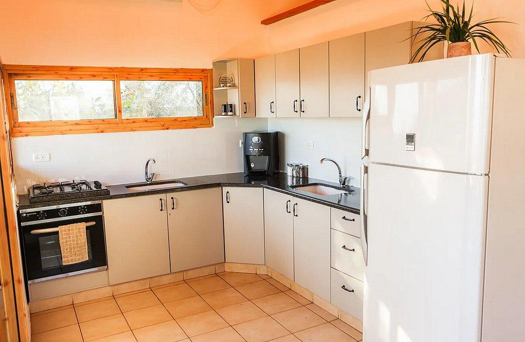 מטבח גדול ומאובזר בכלים ובמוצרי חשמל