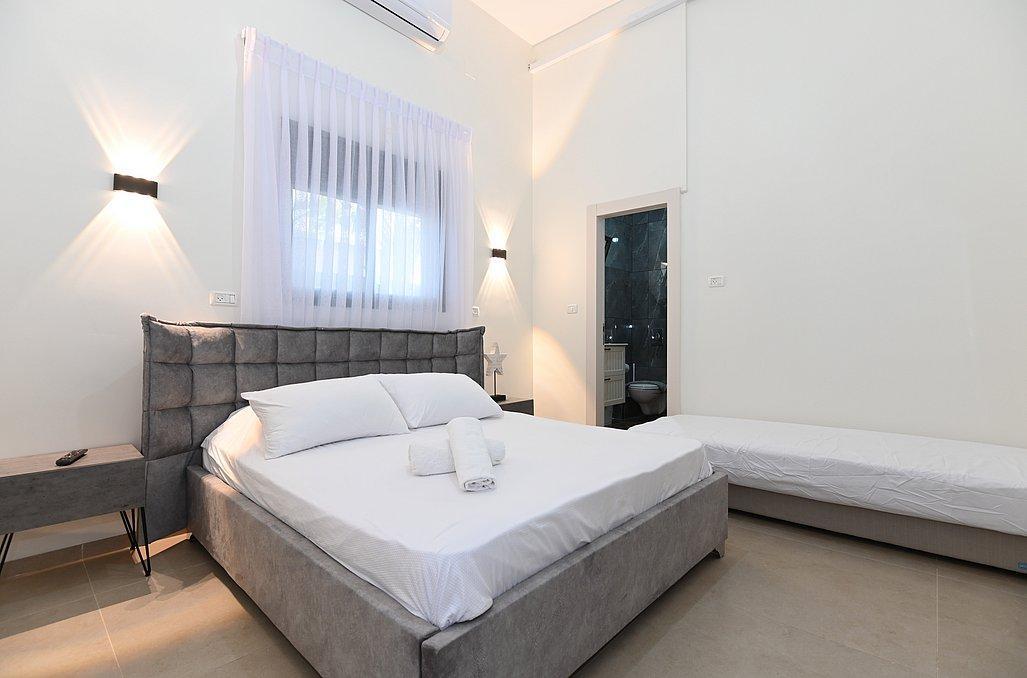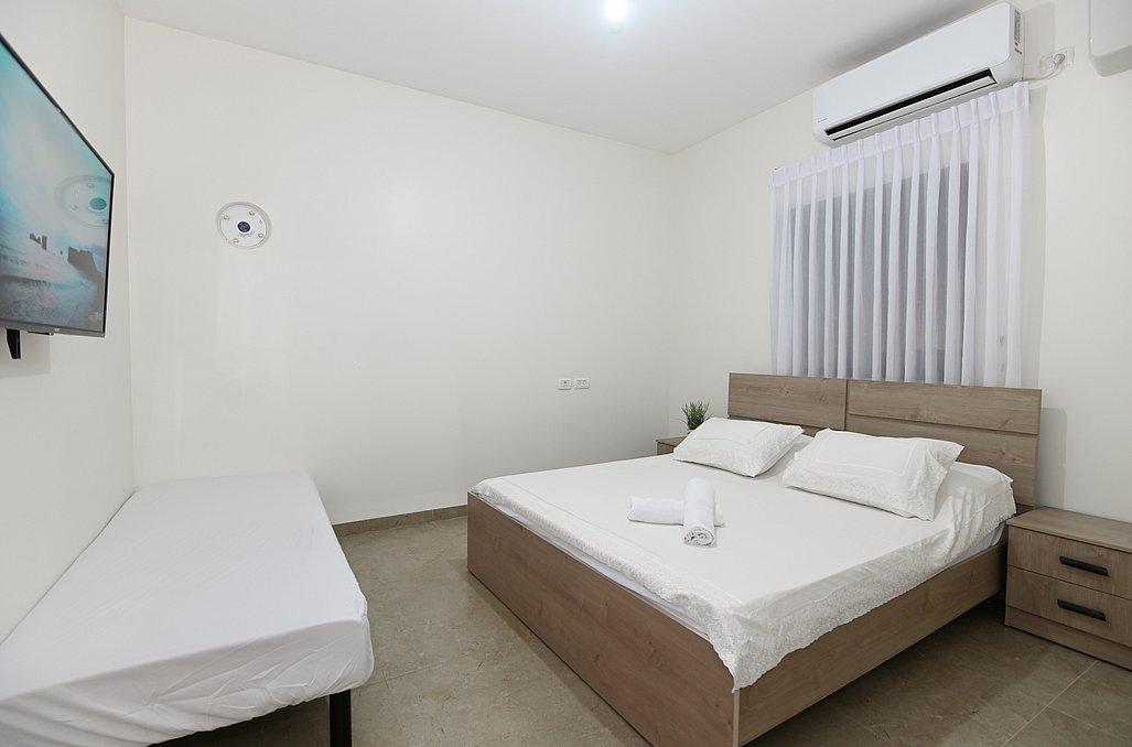 5 חדרי שינה עם מיטה זוגית, טלוויזיה, מיזוג אוויר ושידות אחסון.