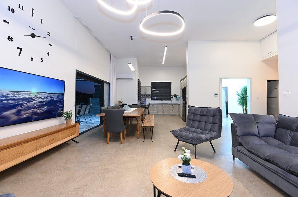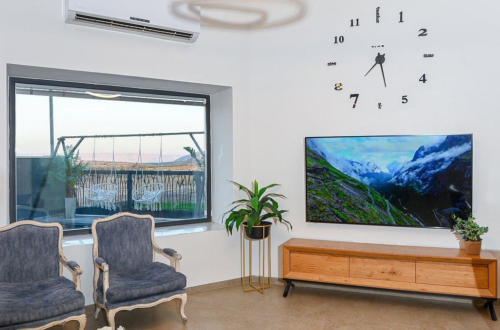 סלון עם מערכת ישיבה נינוחה וטלוויזיה עם חיבור ל-YES