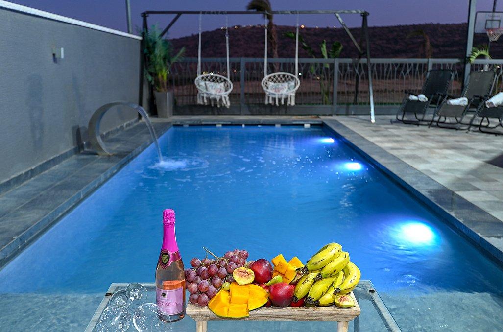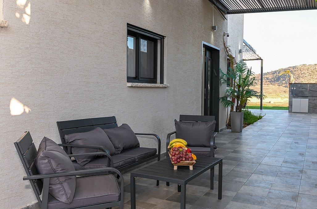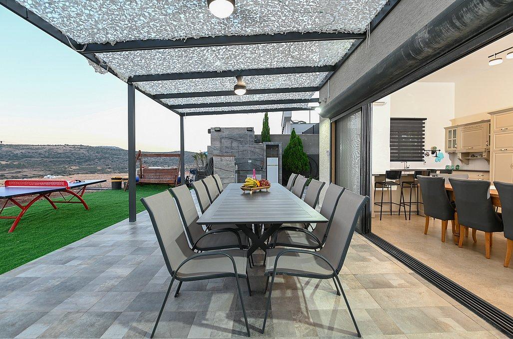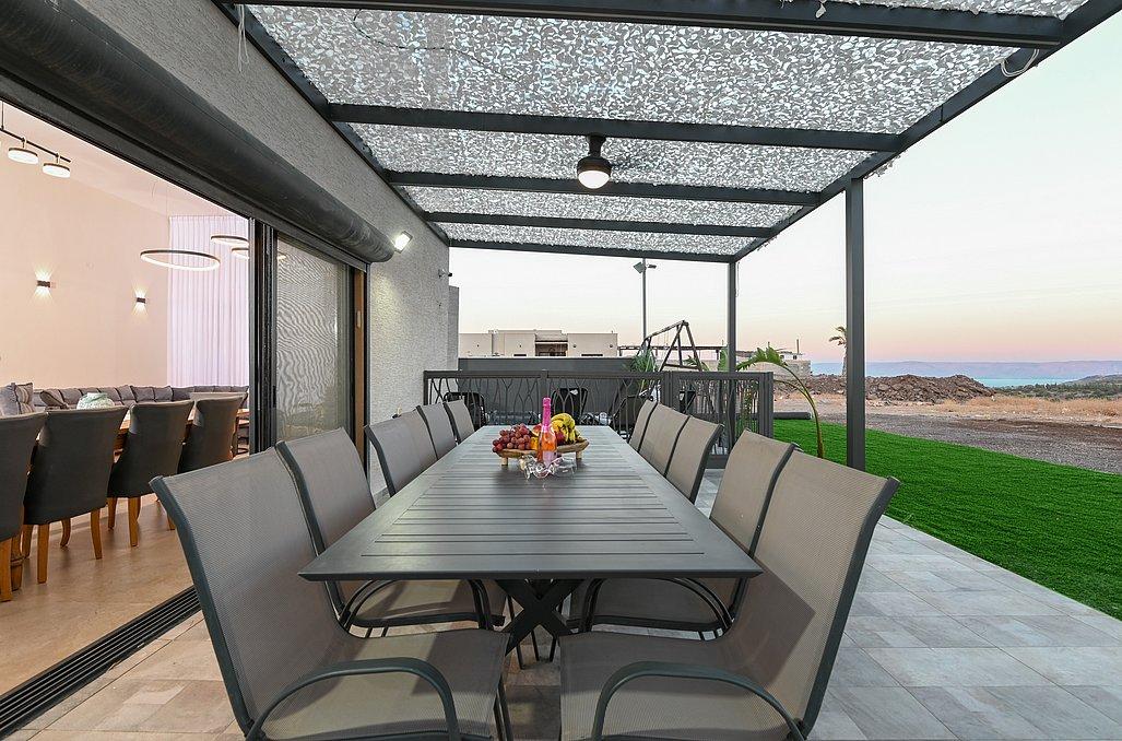 בנוסף, קיים עוד מרפסת עם נוף, פינת אוכל וערסלים.