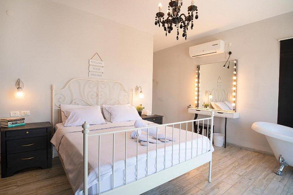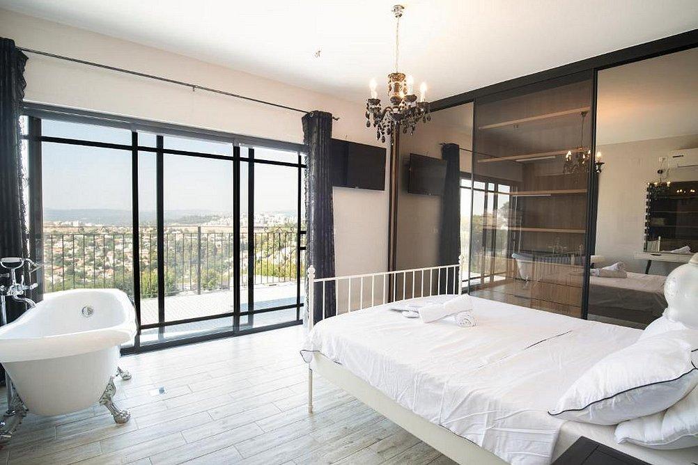 מיטה זוגית, שידה, מיזוג אוויר, מסך צפייה