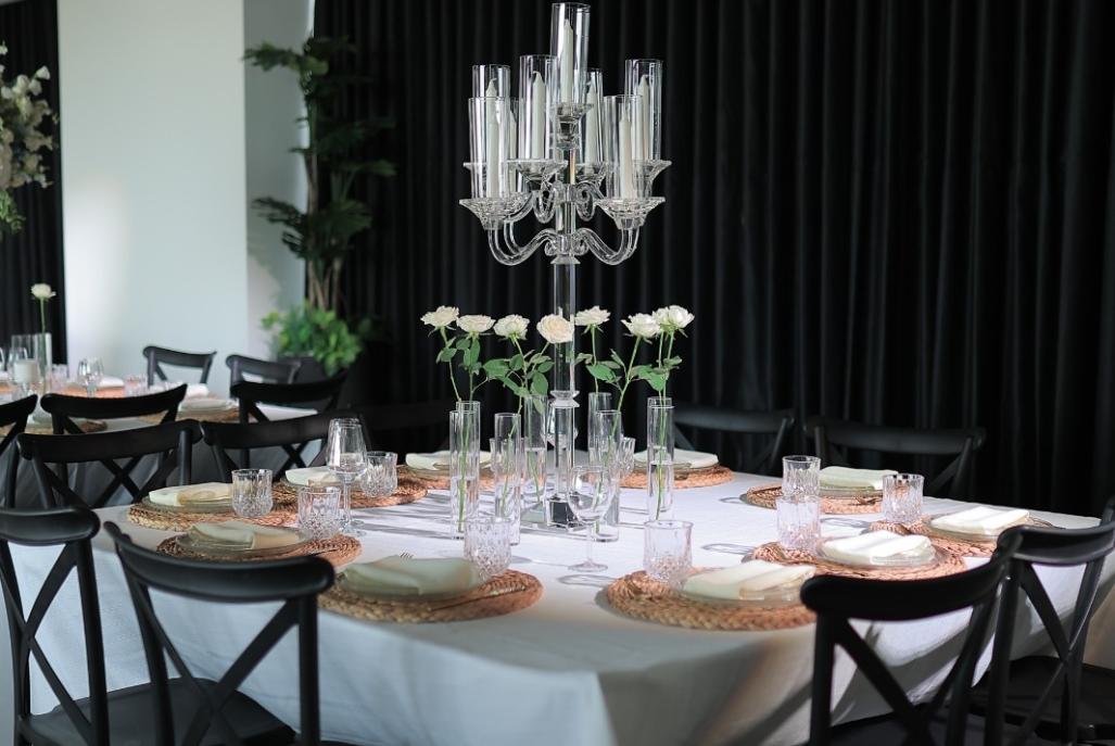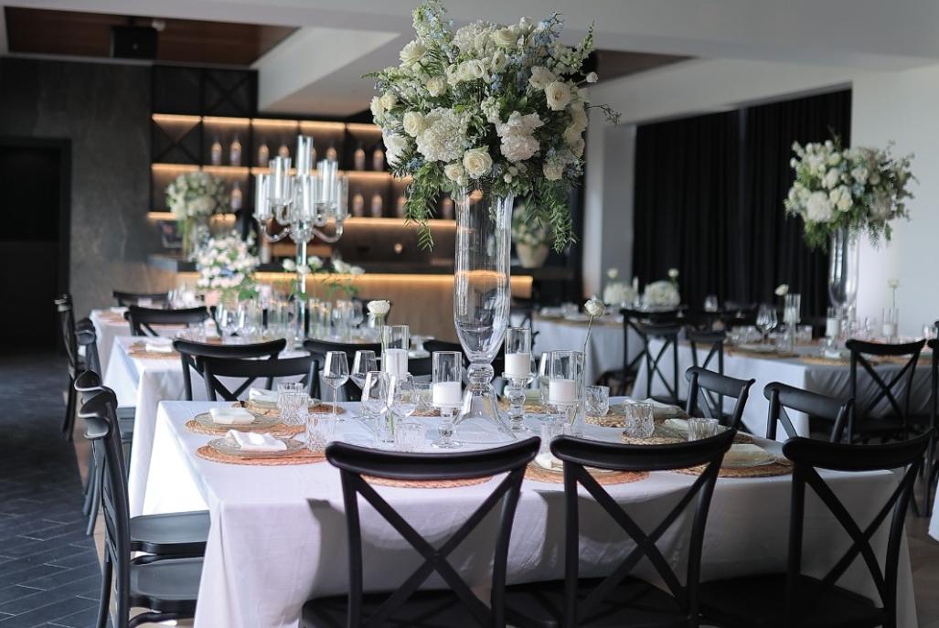 שני אולמות בוטיק אלגנטיים, מתאימים לכל עונות השנה, עם יכולת קיבולת של 120–150 אורחים (או עד 200 באיחוד שני החללים), מערכות תאורה, סאונד והקרנה מתקדמות, מסכי LED מרשימים, שולחנות וכיסאות מהודרים, בר יוקרתי ומטבחים מצוידים. חלונות פנורמיים אל הנוף המדברי מוסיפים נופך קסום לכל אירוע.