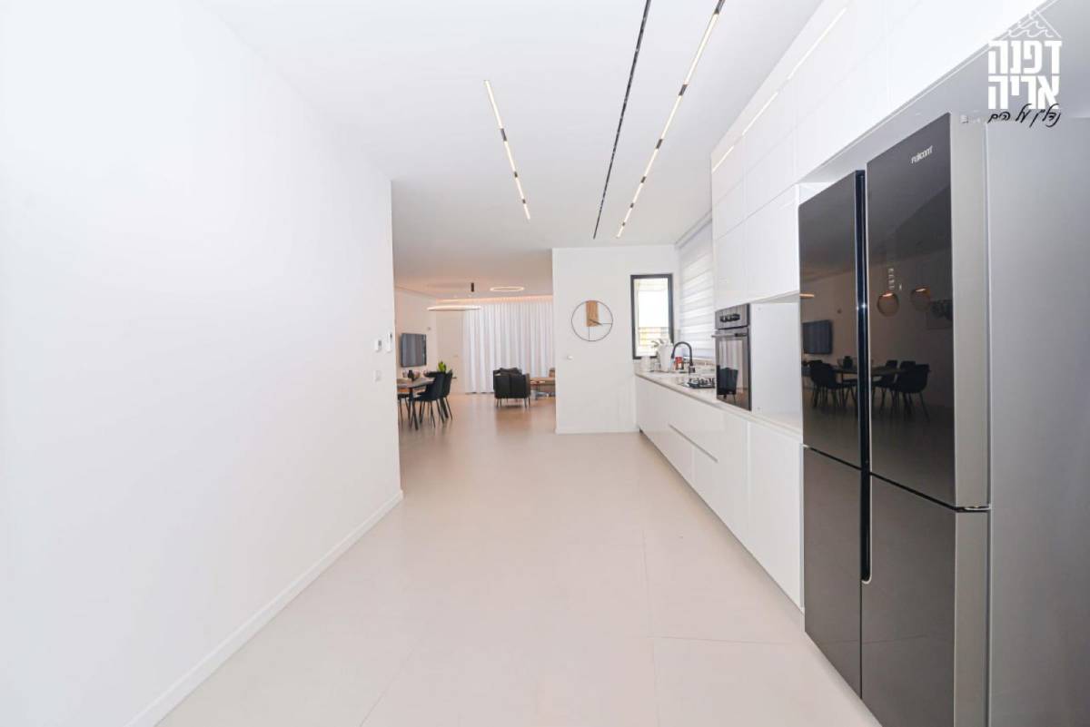 מטבח מאובזר הכולל: מקרר, תנור אפייה, כיריים גז, פינת קפה, מתקן מים, כלי אוכל והגשה, אי עם 3 כסאות.