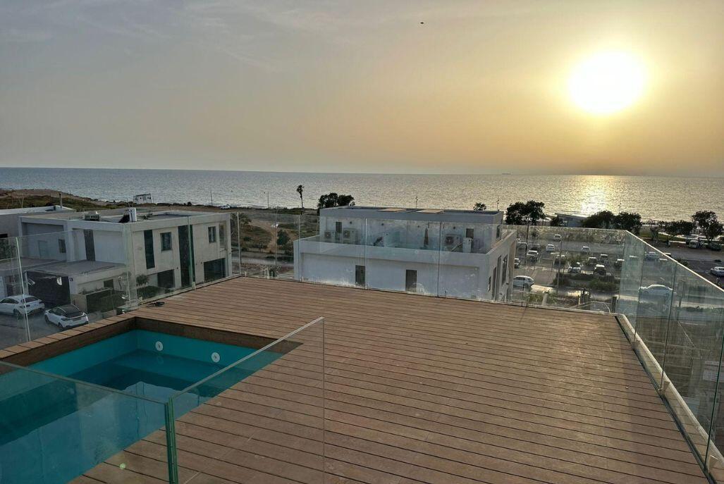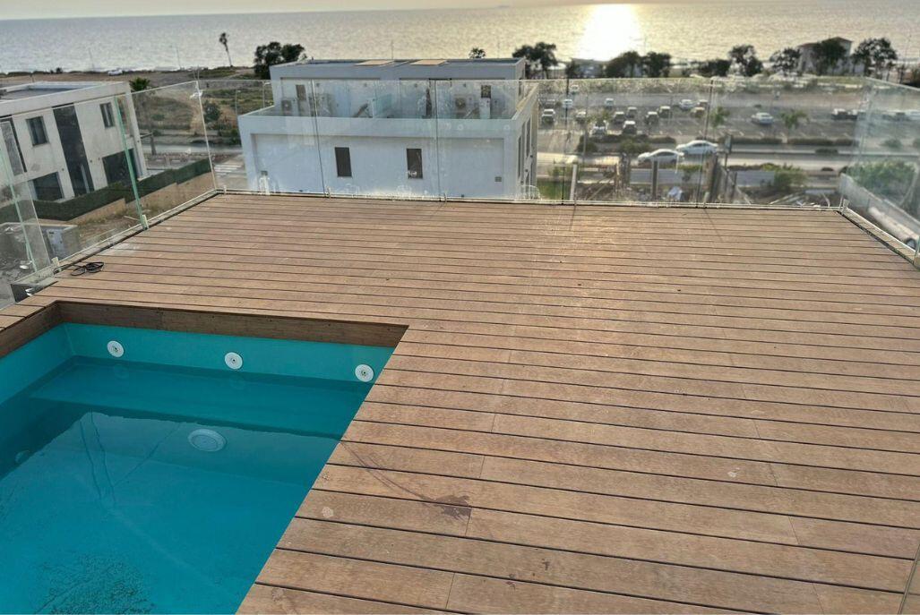 בריכת שחייה בנויה ומחוממת עם זרמים הצופה לנוף של הים (בגודל 12 מ"ר)