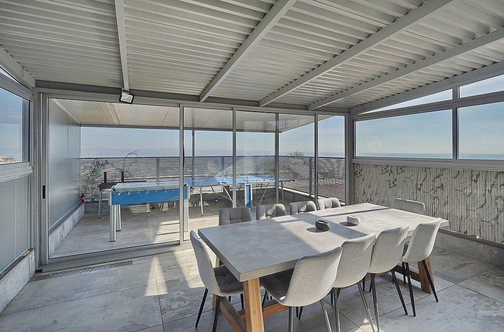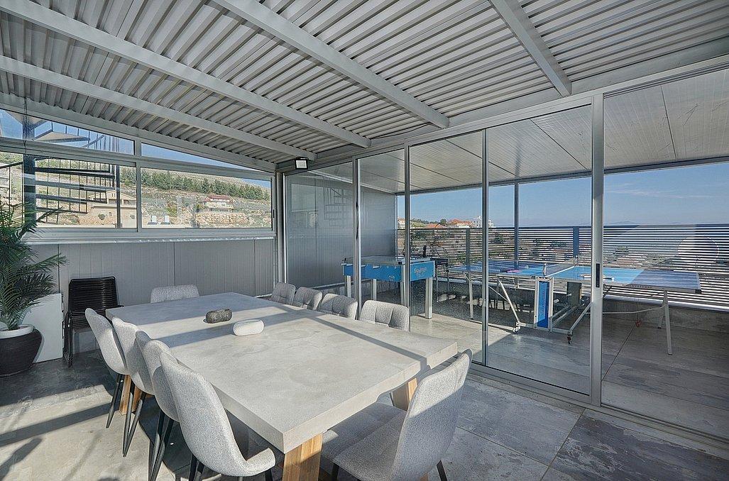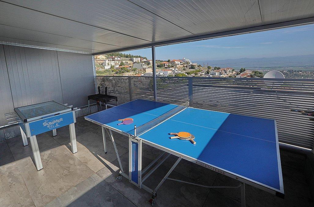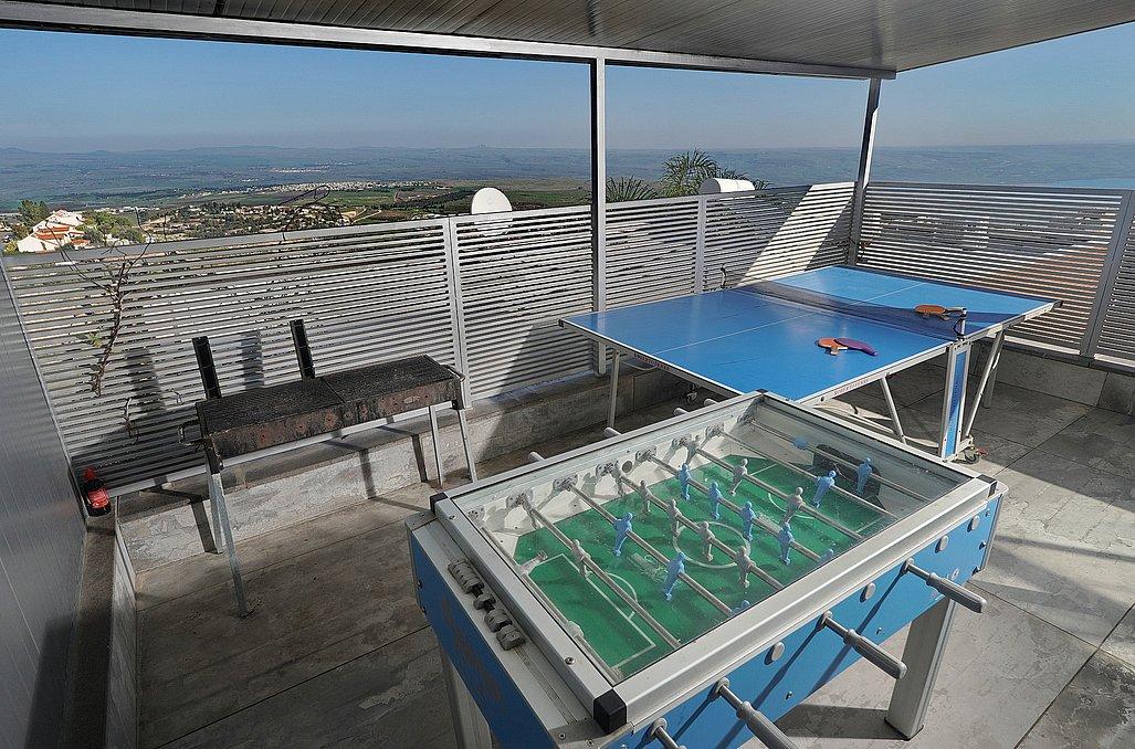 מרפסת עם שולחן פינג פונג ושולחן כדורגל