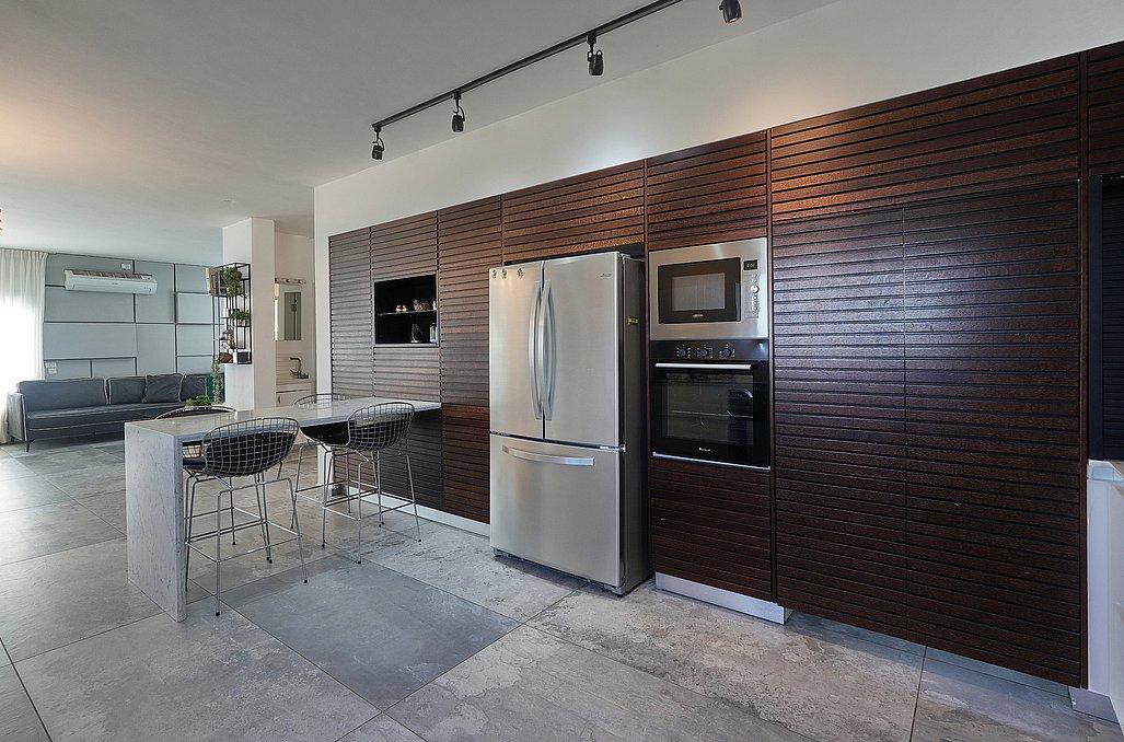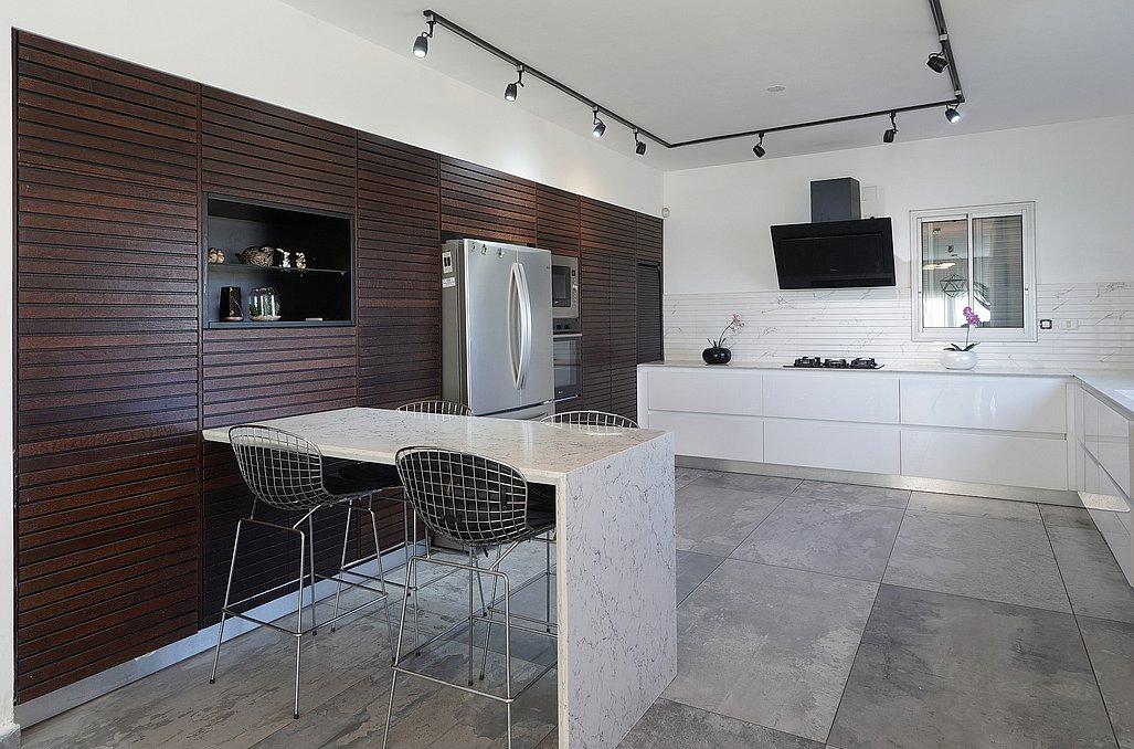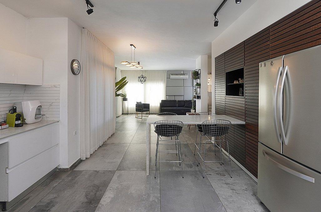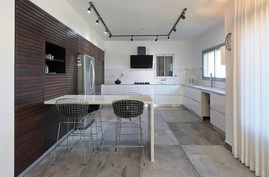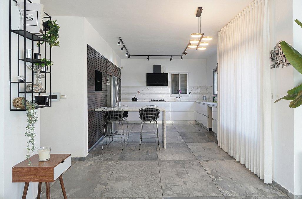 מטבח מאובזר הכולל מקרר, כיור, תנור אפייה, מיקרוגל, תמי 4, כלי אוכל והגשה. בנוסף, דלפק אי לצידו