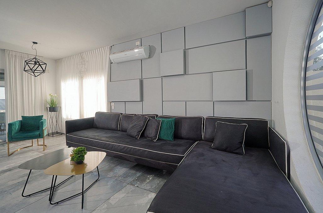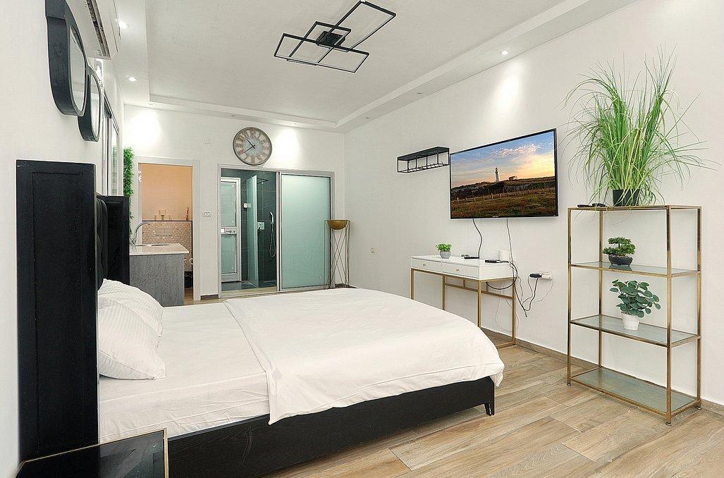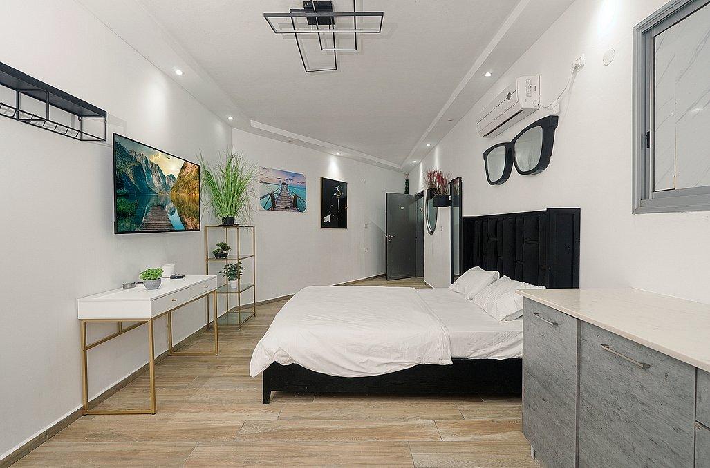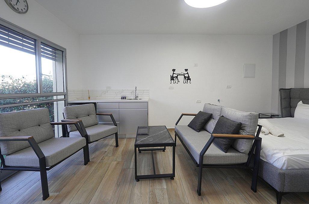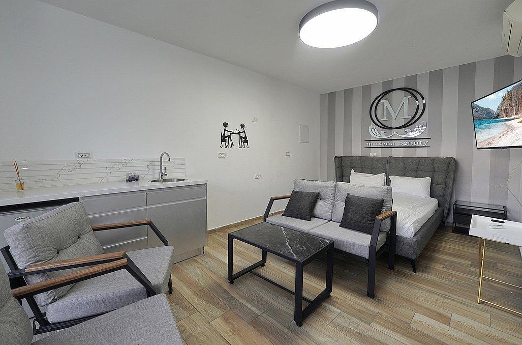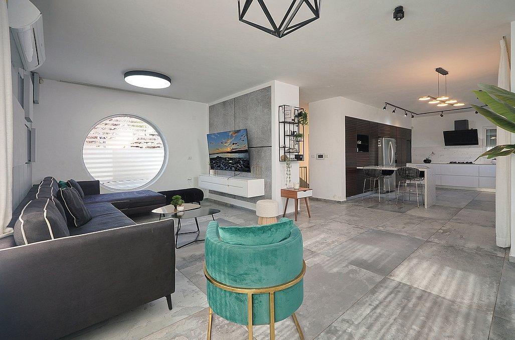 טלוויזיה חכמה, חיבור לנטפליקס חינם ויוטיוב (באישור הזמנה) סלון מעוצב עם מערכת ישיבה וטלוויזיה