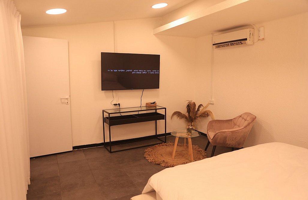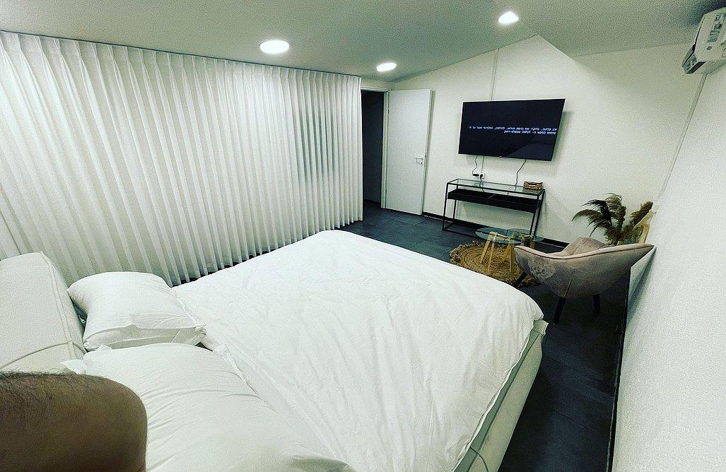 קיים חדר מנוחה הכולל מיטה זוגית טלוויזיה ומגזן