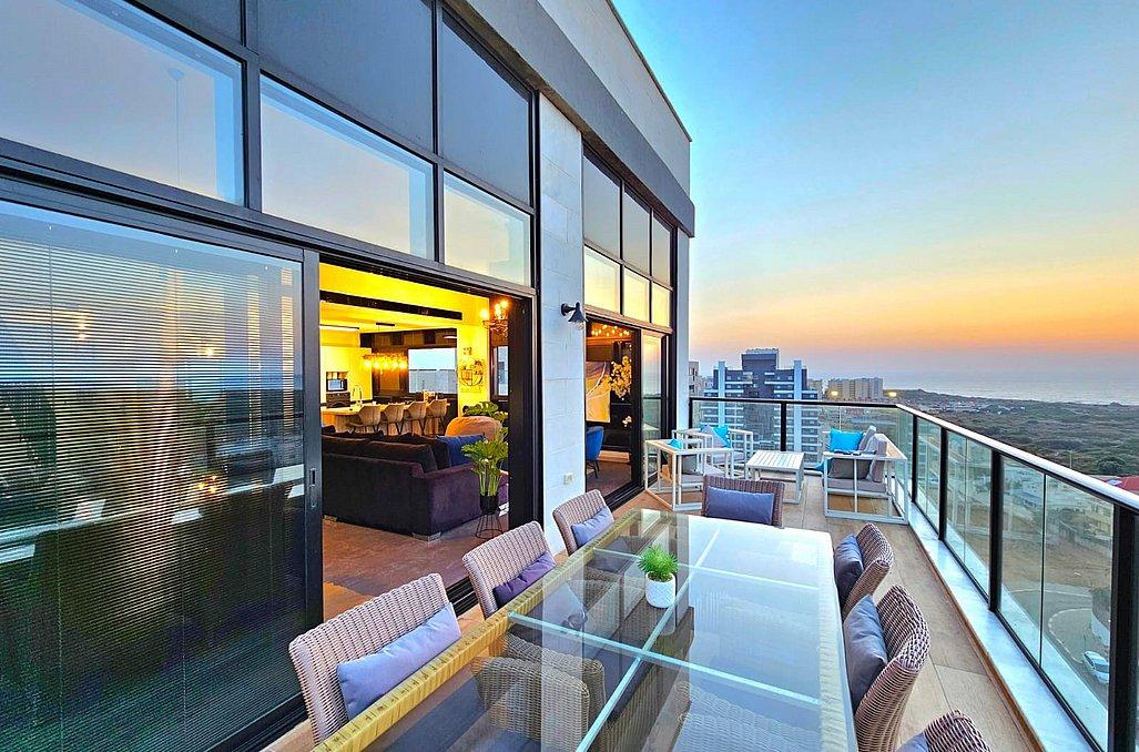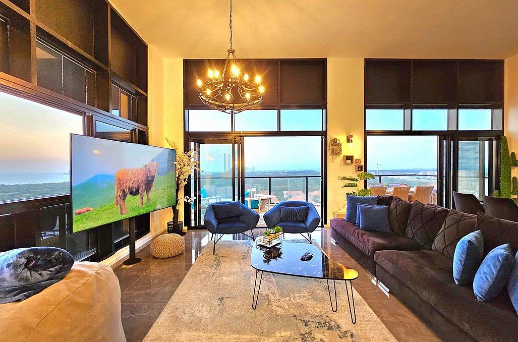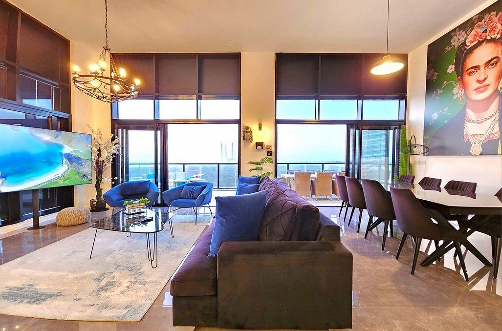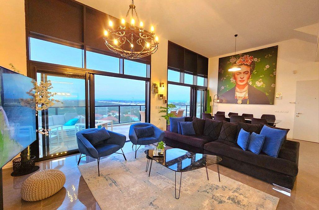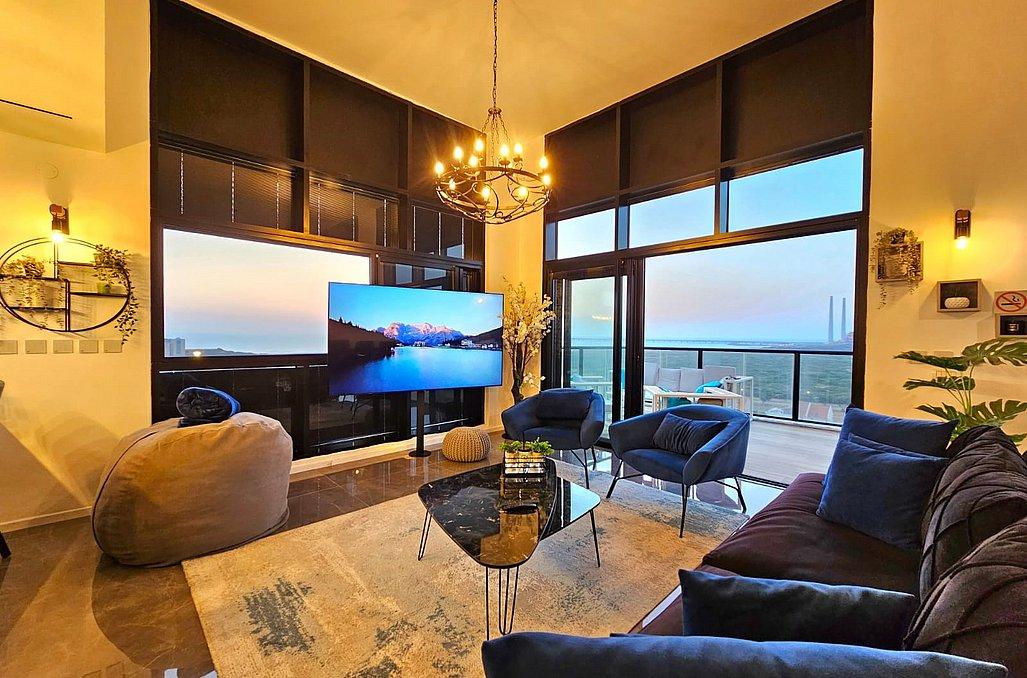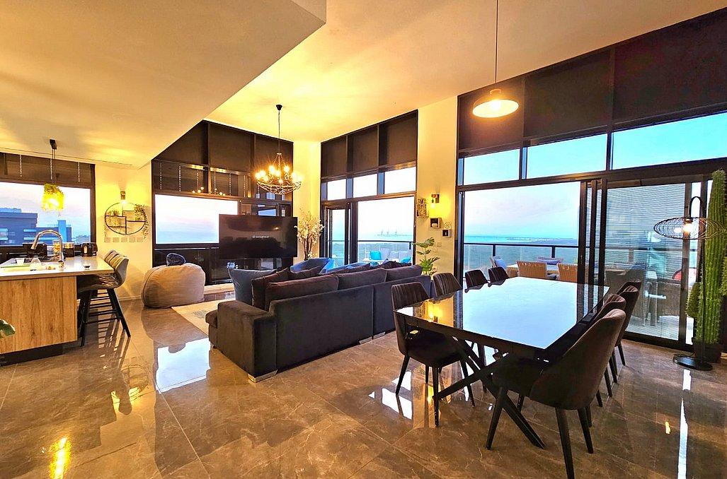 בפנטהאוז תהנו מסלון גדול ומעוצב וטלוויזיה בגודל 100 אינץ', מטבח מאובזר הכולל - מקרר, כיריים גז, מיקרוגל, מיחם, כלי אוכל והגשה, פינת אוכל ו- 4 חדרי שינה מאובזרים