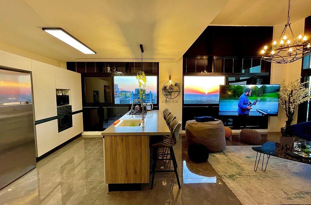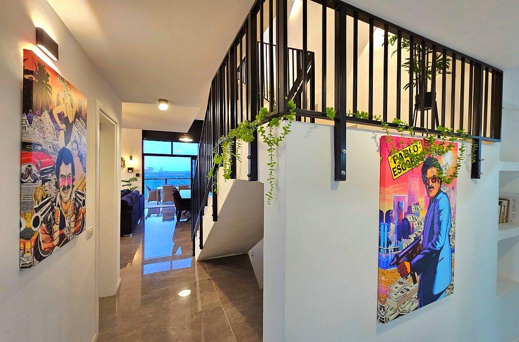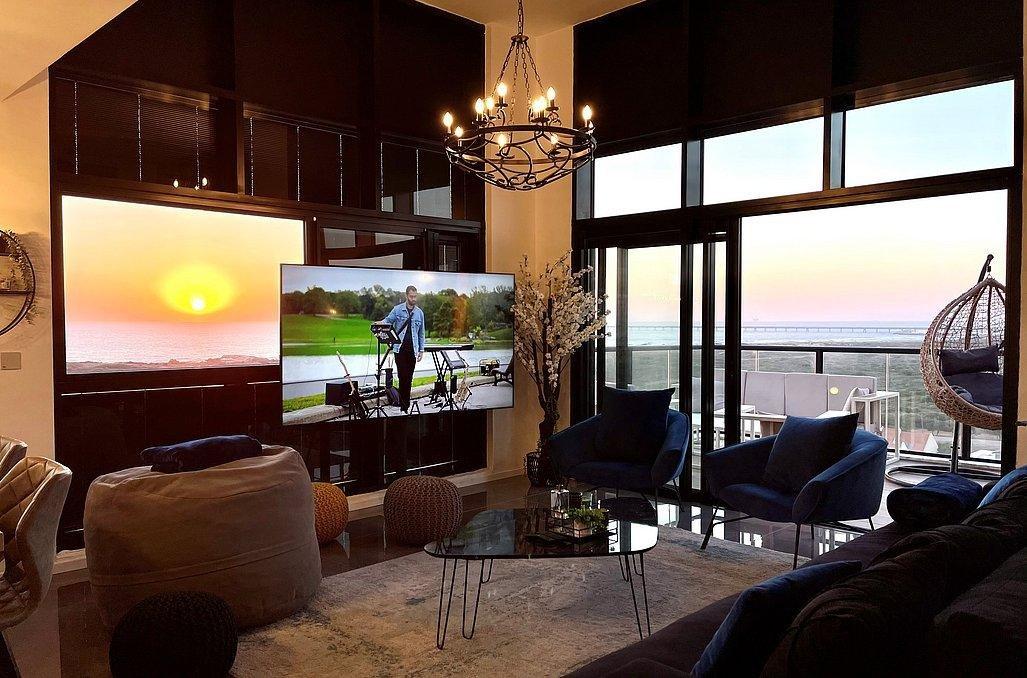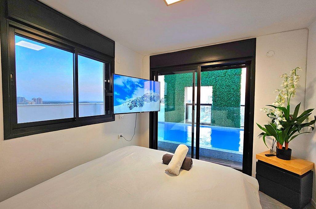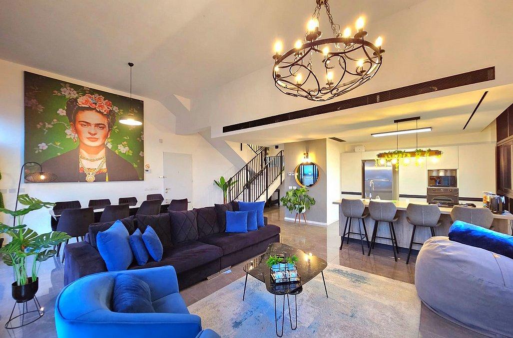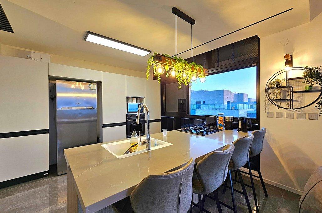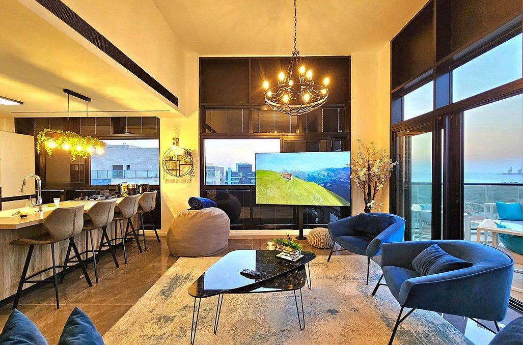 בפנטהאוז תהנו מסלון גדול ומעוצב וטלוויזיה בגודל 100 אינץ', מטבח מאובזר הכולל - מקרר, כיריים גז, מיקרוגל, מיחם, כלי אוכל והגשה, פינת אוכל ו- 4 חדרי שינה מאובזרים
