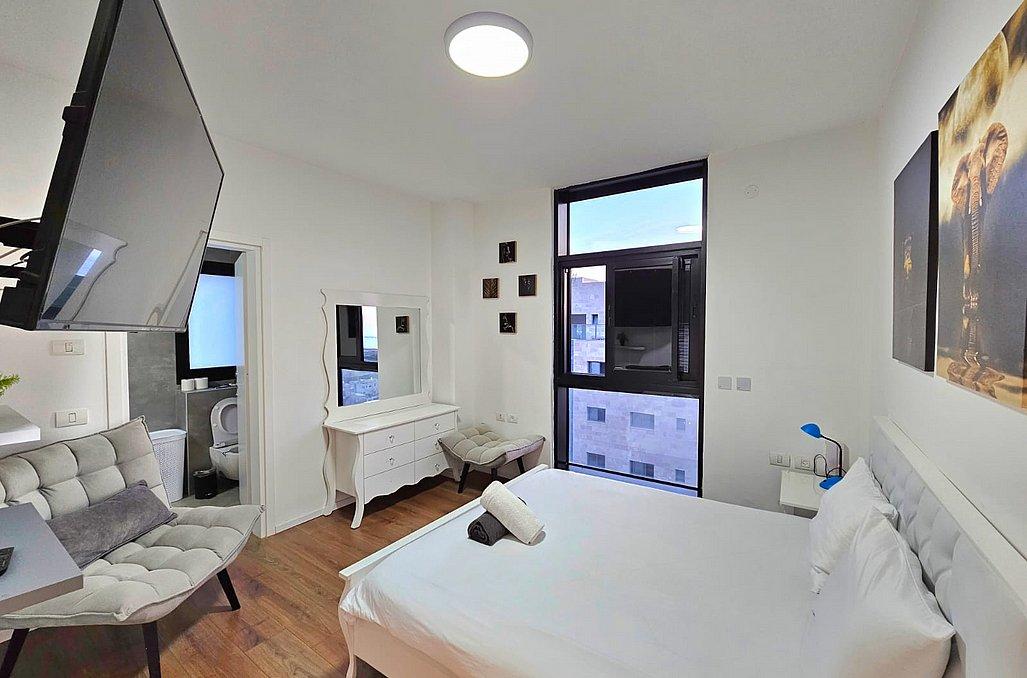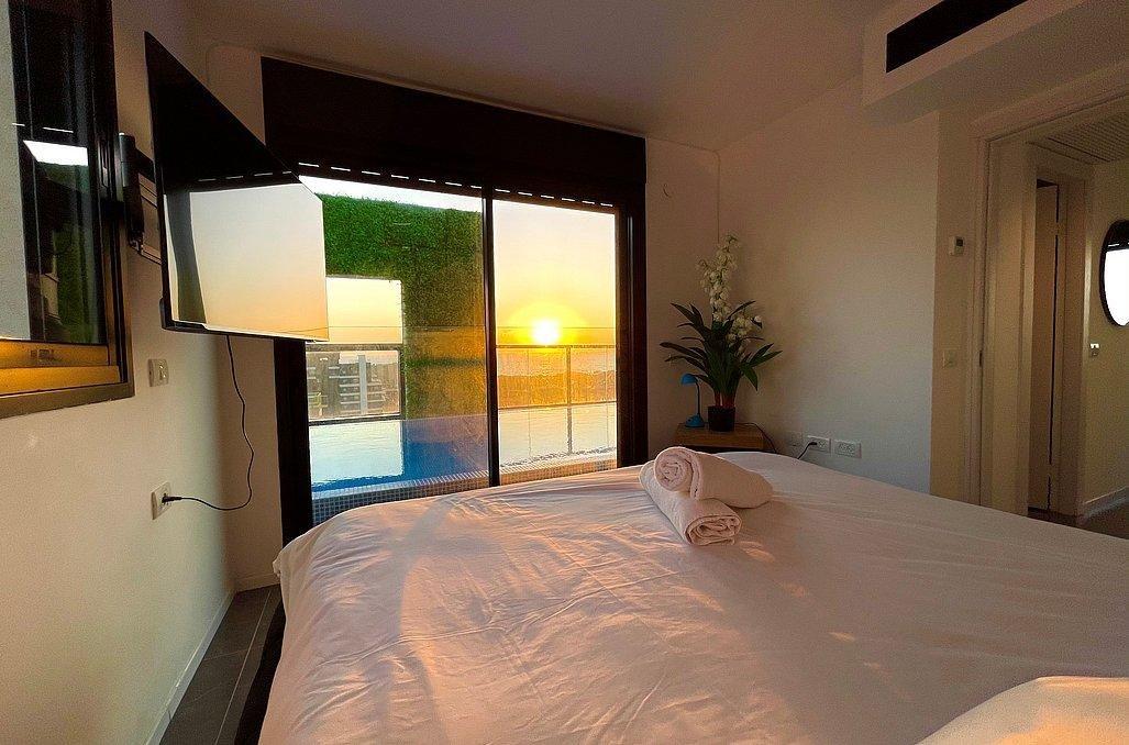 חדר שינה 1+2 (סוויטה) - מיטה זוגית, מיזוג אוויר, טלוויזיה, חדר רחצה פרטי ונוף מרהיב אל הים