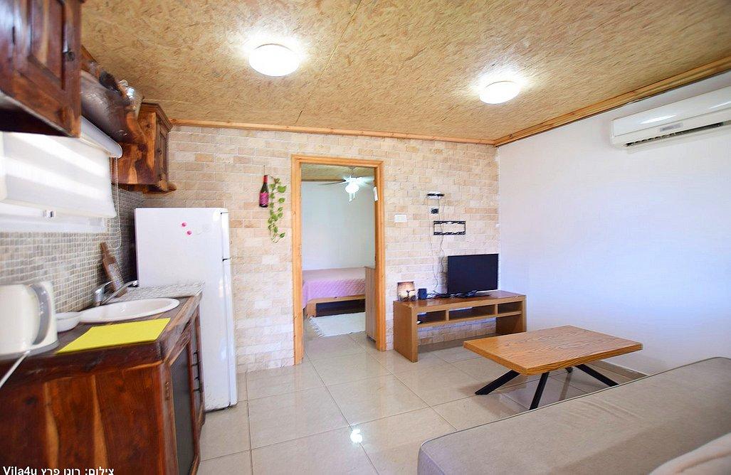 חדר שינה זוגי, שירותים, מקלחת, פינת ישיבה, מטבחון