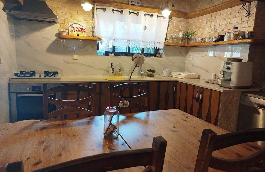 מטבח עם כל הציוד הדרוש כולל מקרר, כיריים, מתקן מים (קיימים 2 תמי 4), מדיח כלים וכלי אוכל
