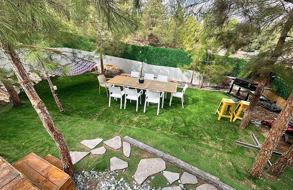 מרפסת הכוללת גינה עם פינת ישיבה