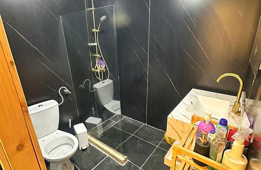 חדר רחצה עם מקלחת ושירותים