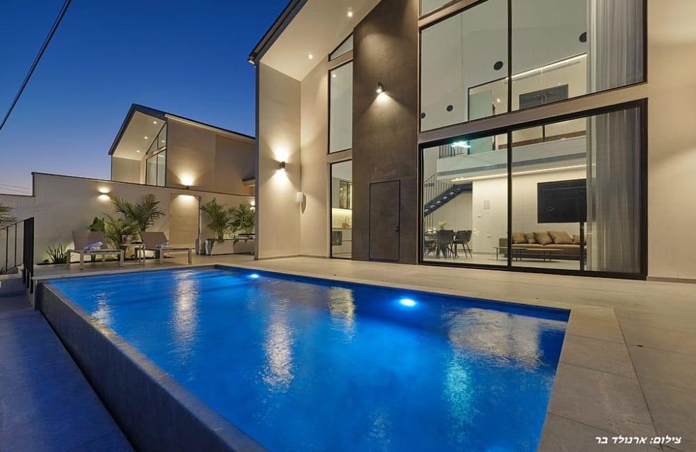 בריכה בנויה מחוממת ומגודרת מידות: 7×3 מטר, עומק מקסימלי: 1.3 מטר