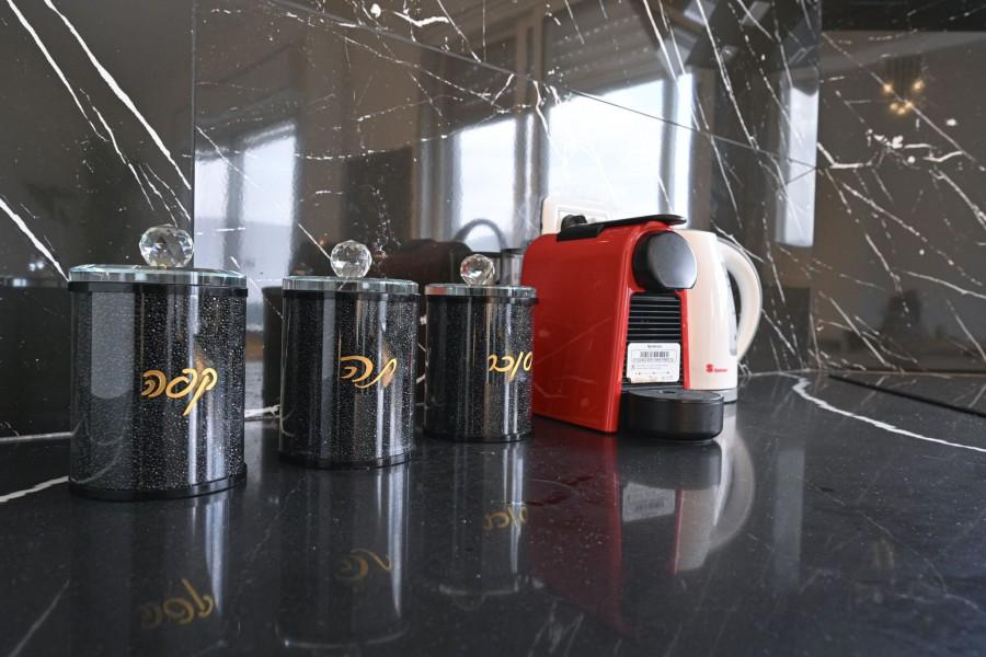 - מטבח עם מקרר, תנור, מיקרוגל, מכונת אספרסו, פינת קפה, פלטת שבת ומיחם