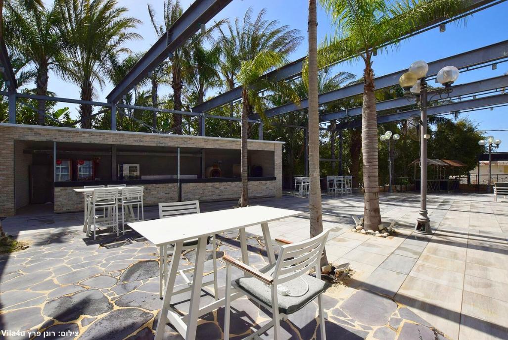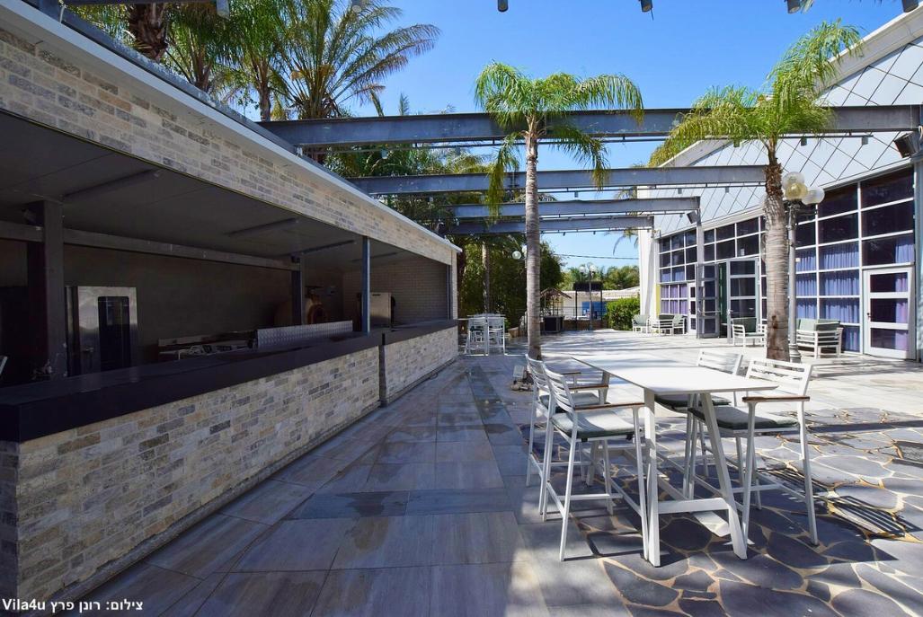 - מטבח חוץ גדול ומאובזר, כולל מקרר, מקפיא, מיקרוגל, כיריים, טאבון, פלאנצ'ה